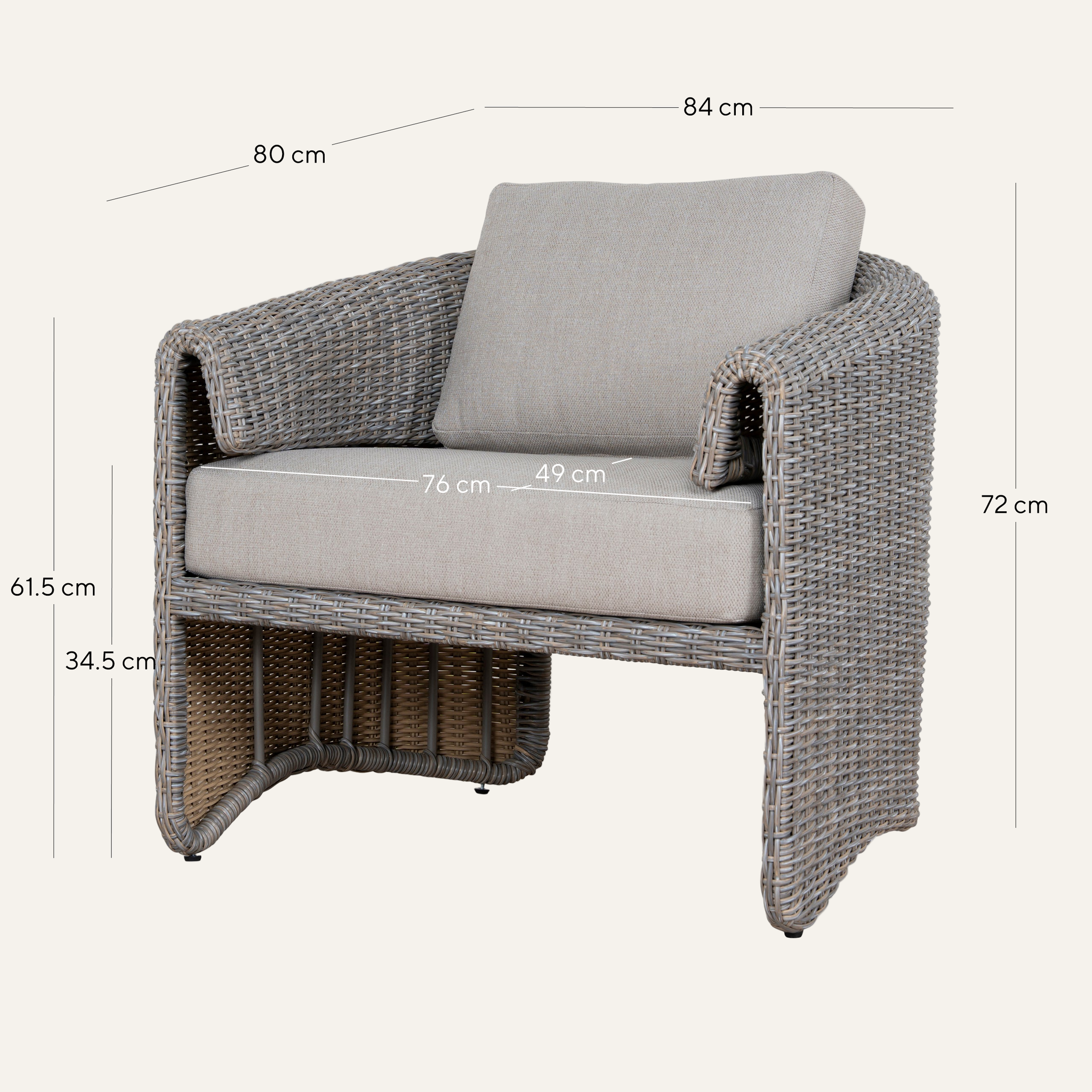 The Rivana Outdoor Armchair in Light Brown blends laid-back comfort with refined craftsmanship, making it an effortless addition to any outdoor space. Its airy, woven profile gives it a relaxed coastal feel while keeping the silhouette elegant and inviting.