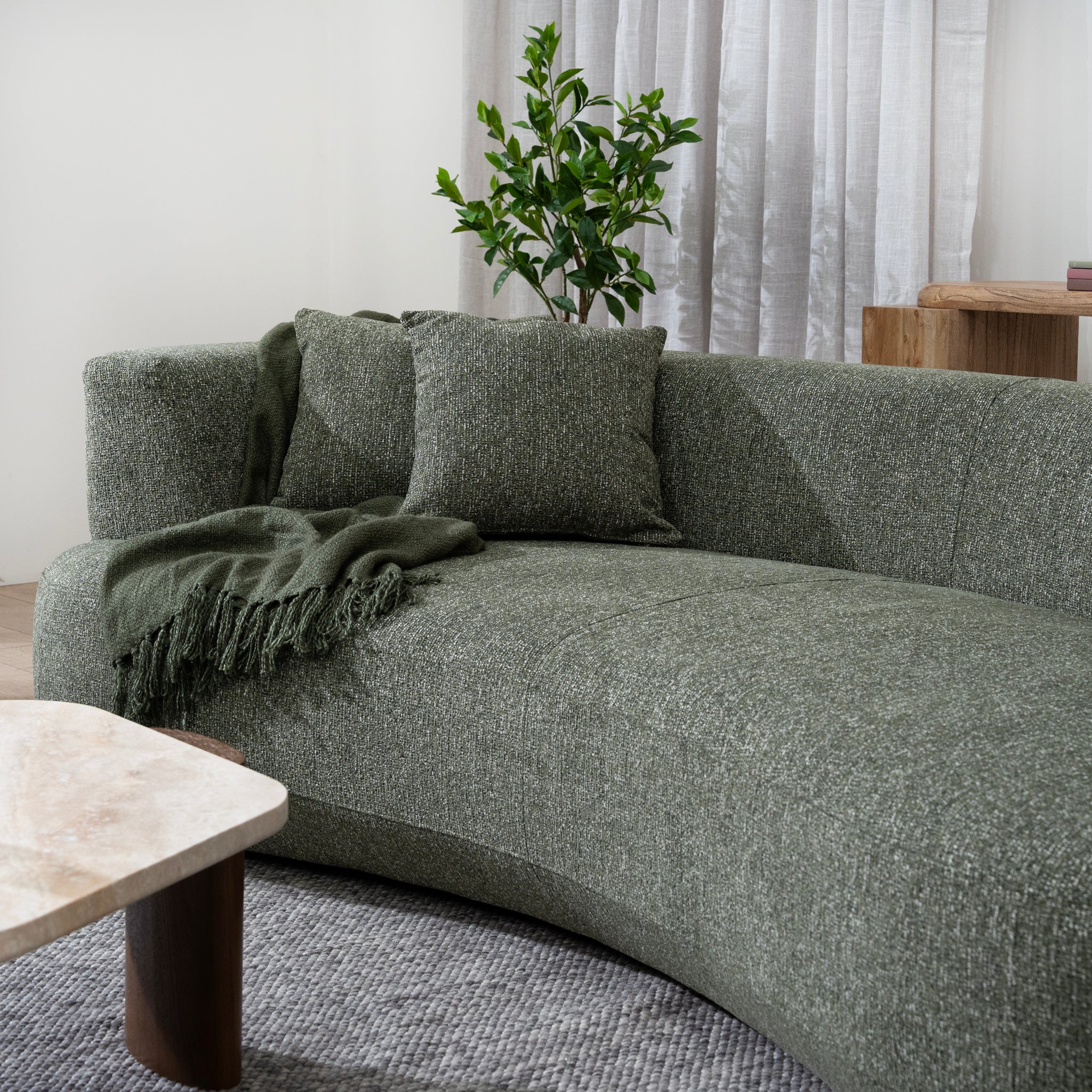The Roly 3 Seater Sofa in Canopy Green is a statement in modern lounge design, offering both artistic appeal and deep-seated comfort. Its sweeping, curved silhouette flows effortlessly, creating a sense of movement and openness that complements contemporary interiors.