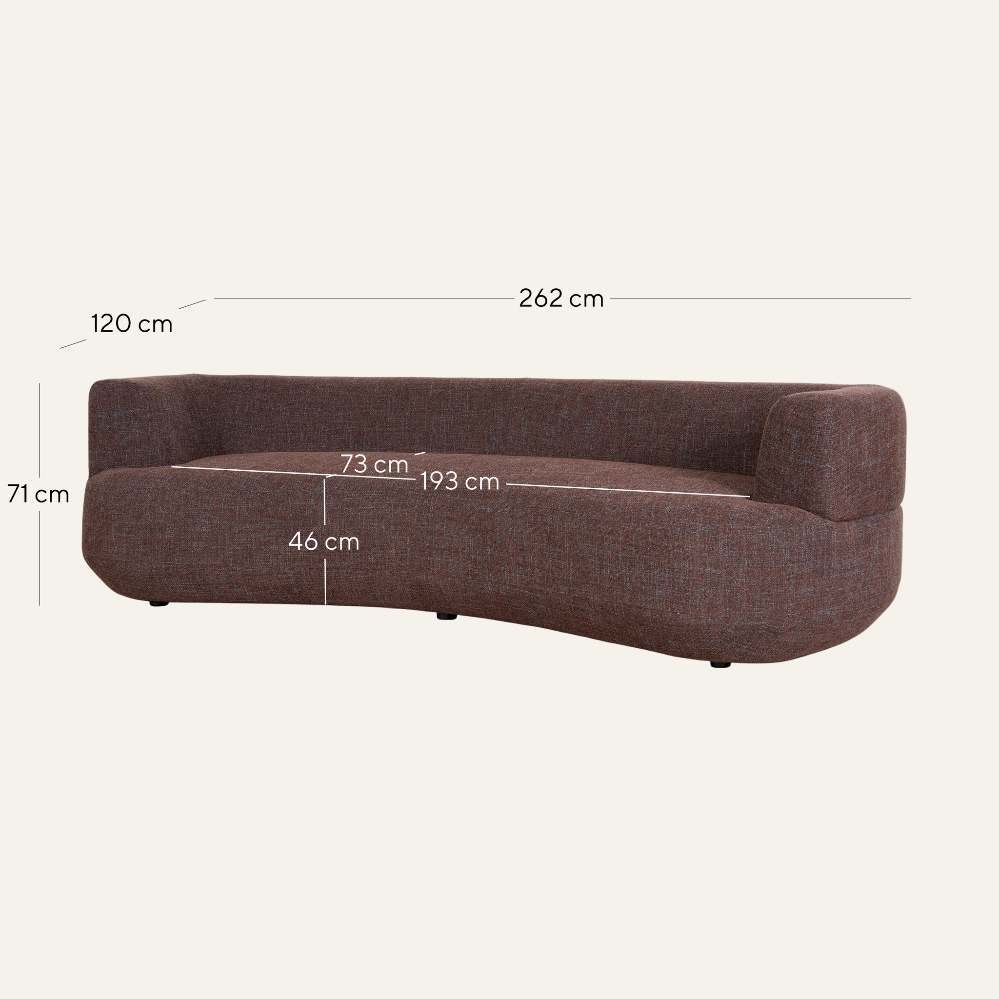 Overall: 262cm (W) x 120cm (D) x 71cm (H) Seat: 193cm (W) x 73cm (D) x 46cm (H) Arm Height: 70cm Leg Height: 3cm