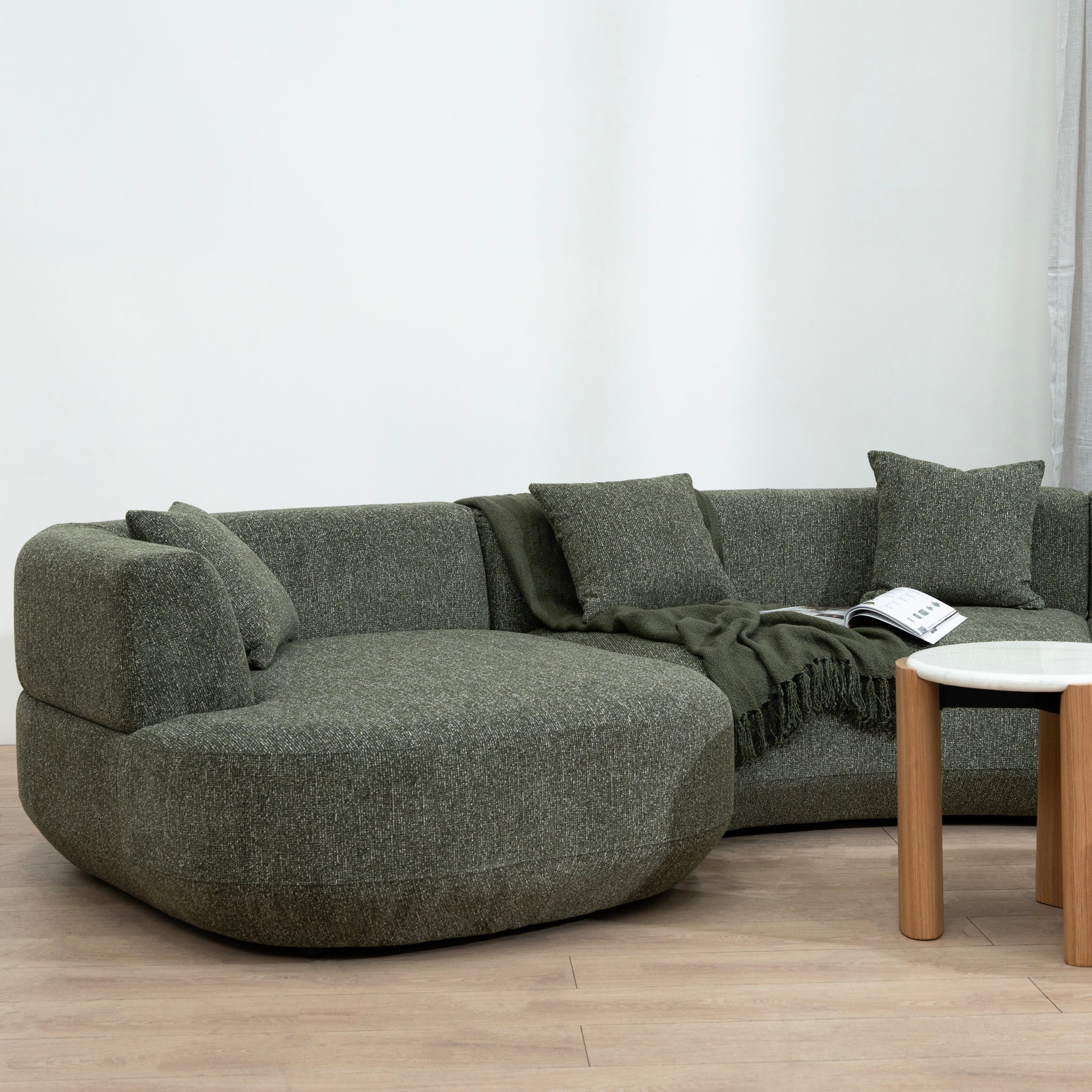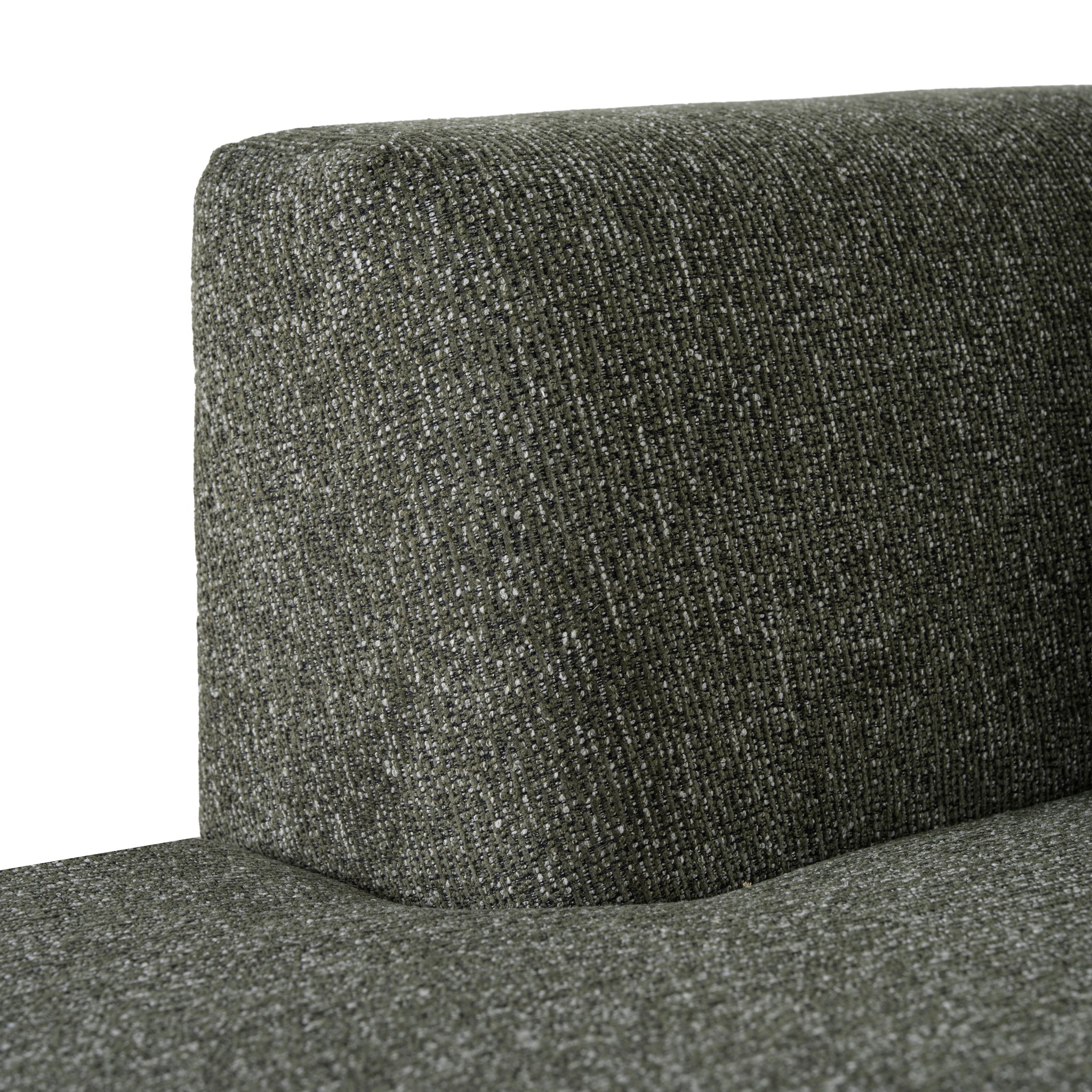 Crafted with generous proportions and plush cushioning, the Roly Modular Right Chaise Sofa in Canopy Green modular design offers versatile seating for gatherings while maintaining a sleek, contemporary profile. The low backrest and rounded edges create a softened, approachable look.