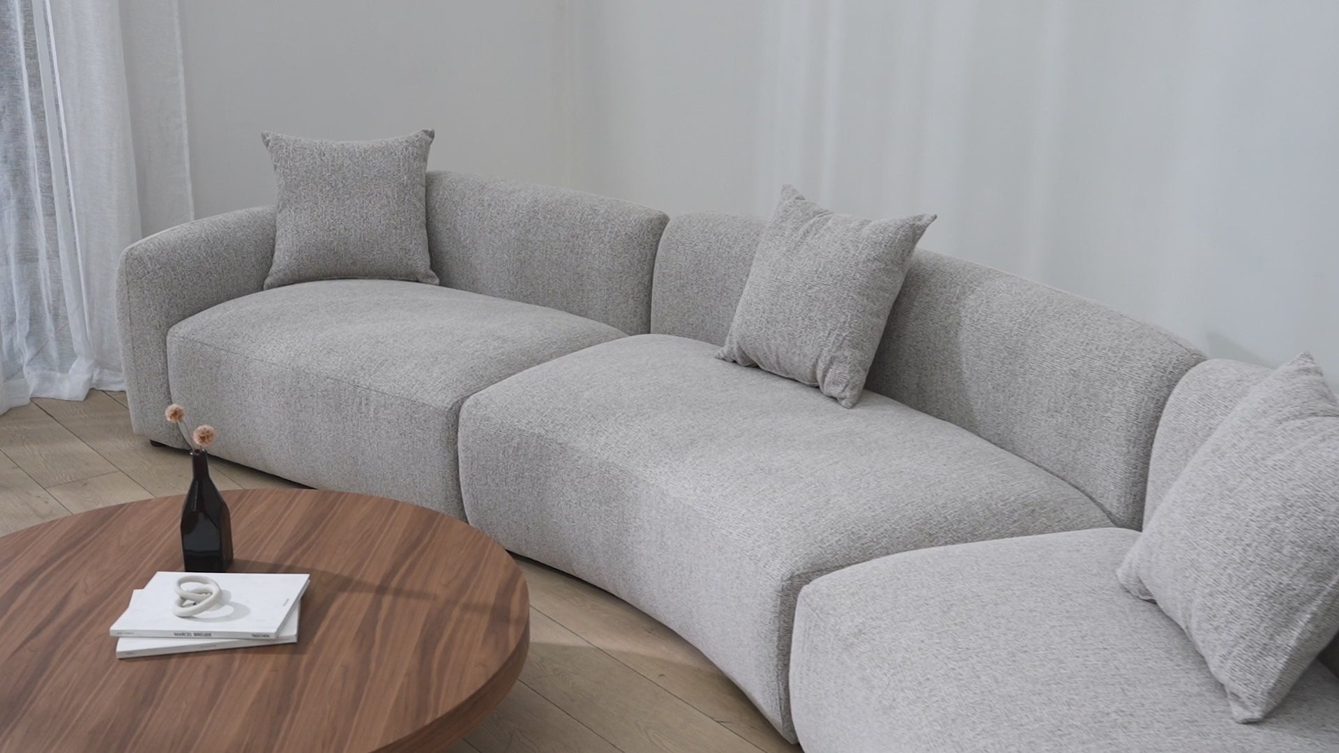 A statement of contemporary elegance and comfort, The Rovena Right Chaise Modular Sofa in Mushroom Beige features soft curves and a fluid silhouette that exude effortless sophistication. Wrapped in textured mushroom beige fabric, it adds warmth and versatility to modern interiors.