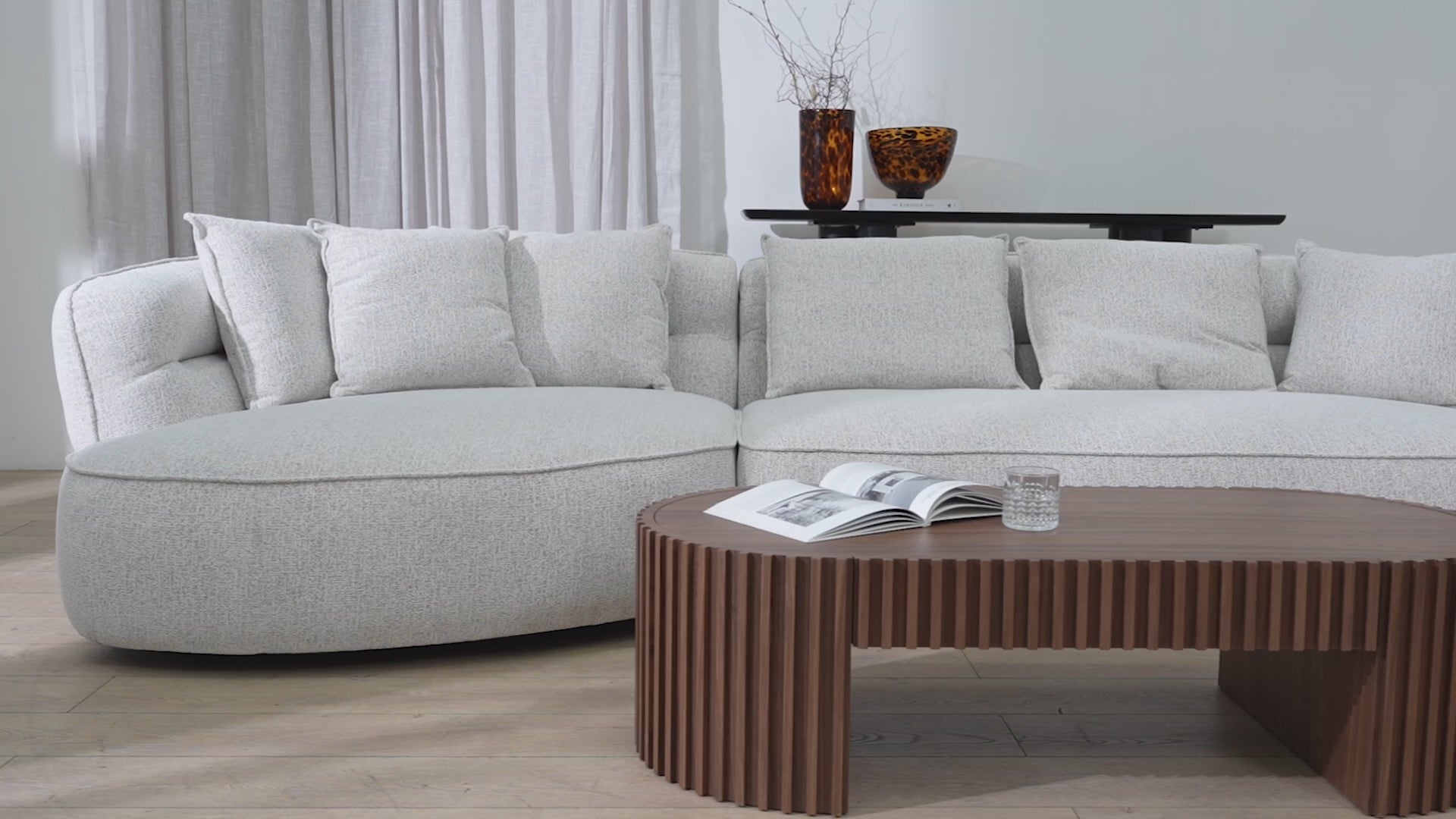- Generous cushions introduce softness and visual volume