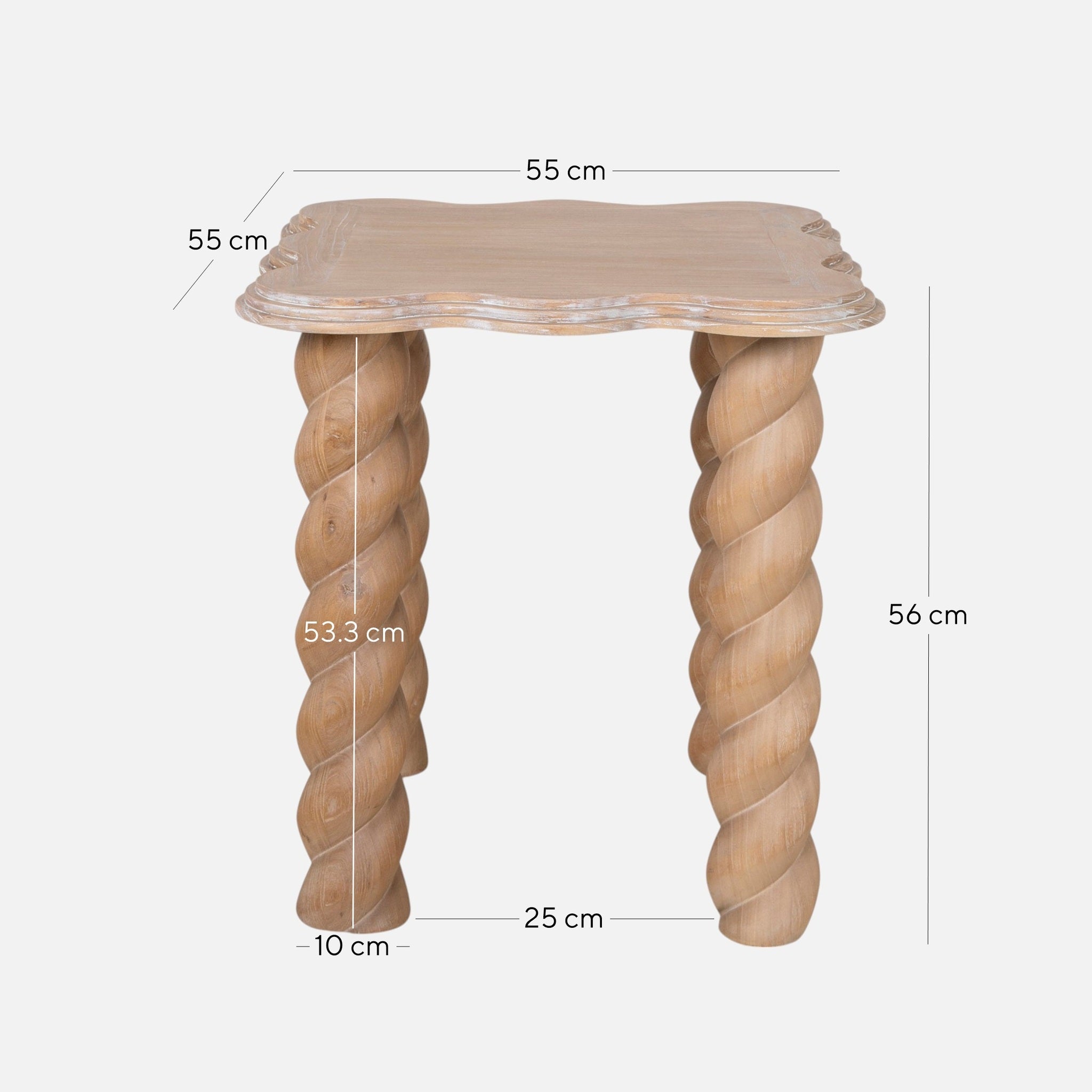 Overall: 55cm (W) x 55cm (D) x 56cm (H) Leg Height: 53.3cm Distance between Legs: 25cm
