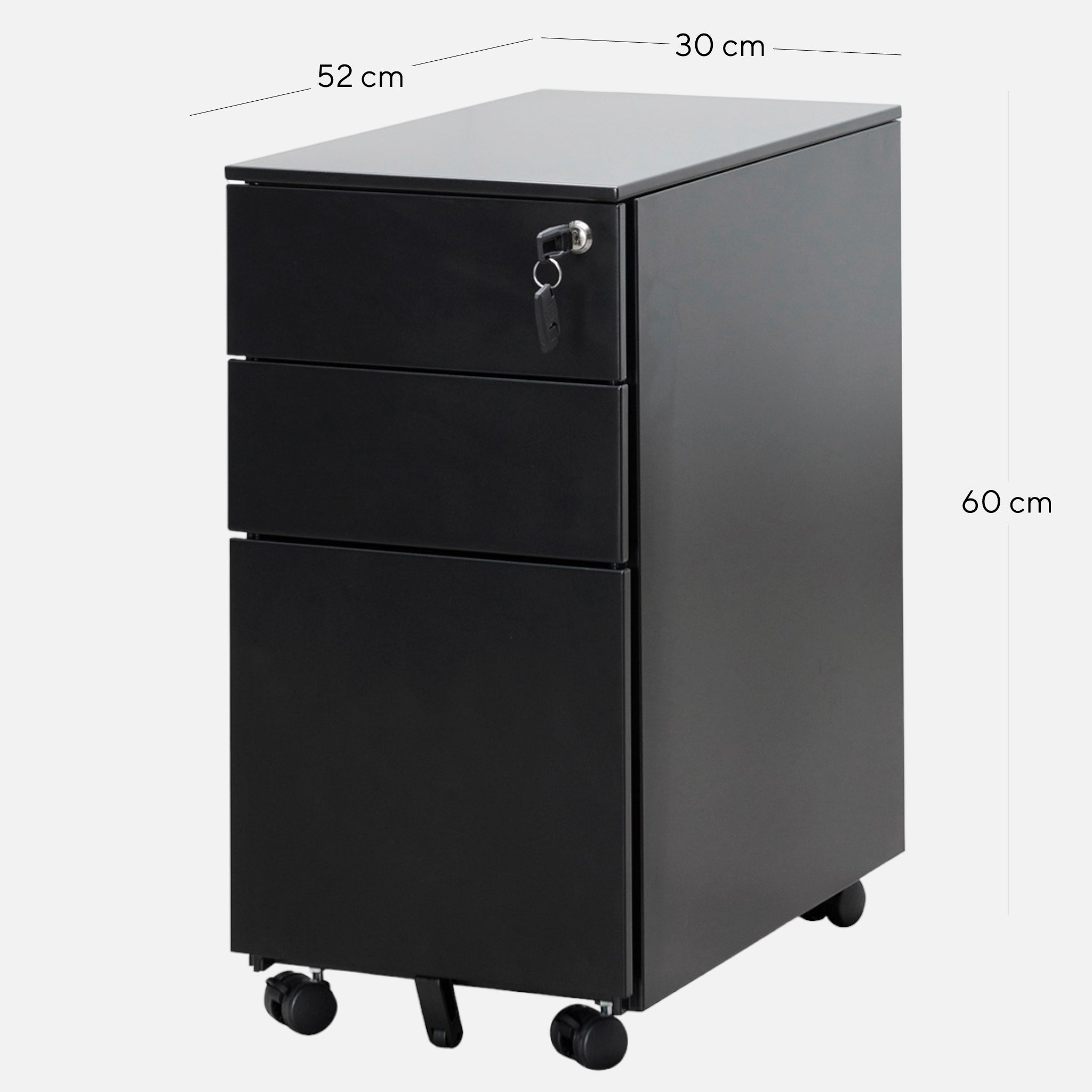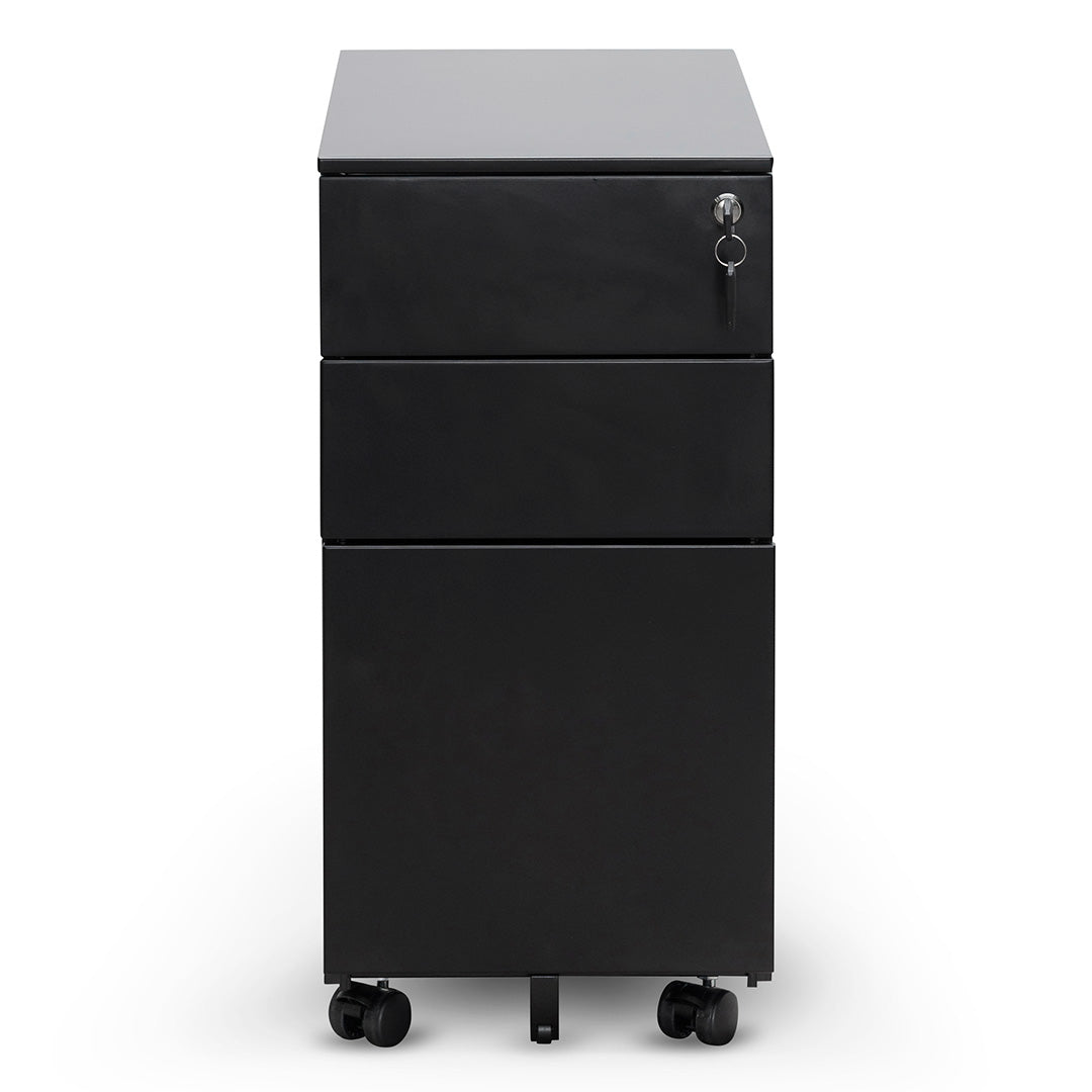 Russel 3 Drawers Slim Mobile Pedestal - Black