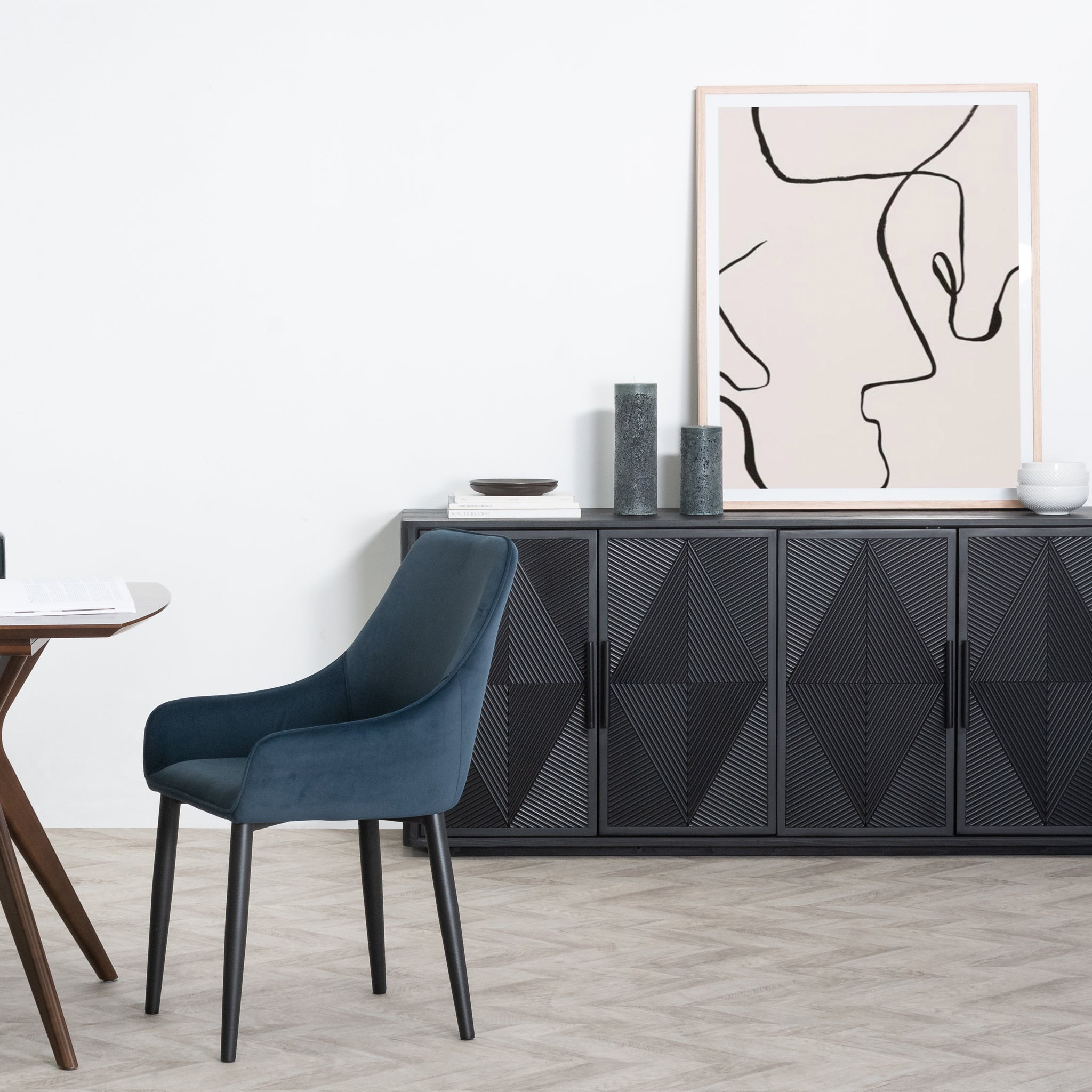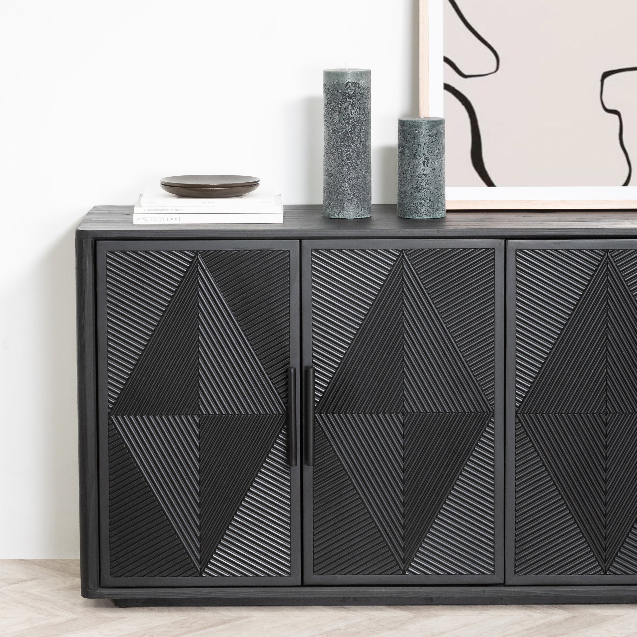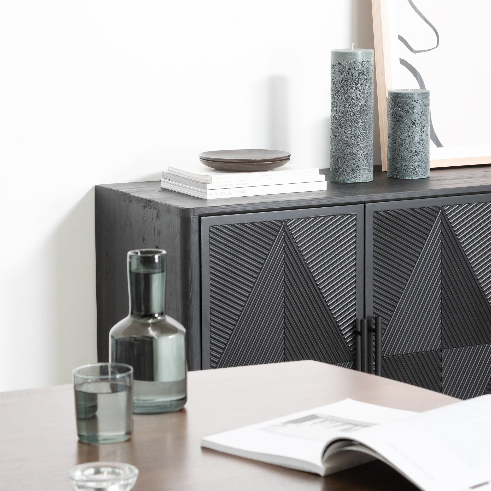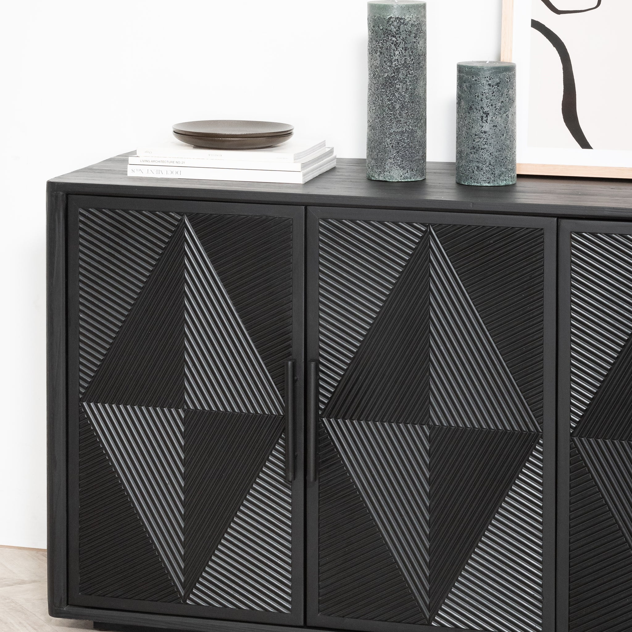 Reflecting geometric lines and charming reeded wood patterns, the Saanvi 1.7m Wooden Buffet Unit - Full Black offers an architectural take on home storage and an undeniably aesthetic display. Exhibiting a rich textural exterior throughout and generous concealed shelves, revel in the ample organization options and its sophisticated design. Check our black buffets.