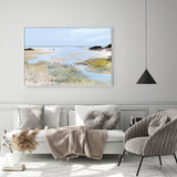 Indulge in the tranquillity of the sea with Sea View by Dan Hobday, beautifully framed by Gioia Wall Art. This abstract oceanic landscape features a calming palette of blue and beige, adding a touch of serenity to any modern interior. Perfect for creating a peaceful ambience in any space.