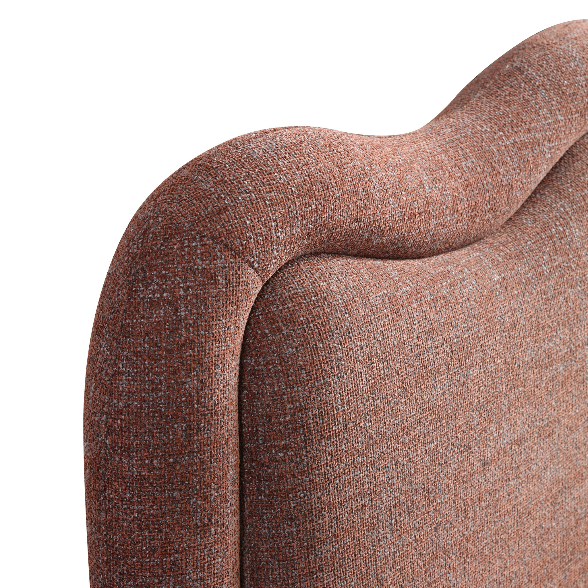 Graceful curves shape the Serelle King Bed in Moss Brown into a distinctive focal point with modern charm. Its flowing headboard brings gentle movement to the space, while the cohesive silhouette creates a cosy, design-led presence. Warm and expressive without feeling overpowering.