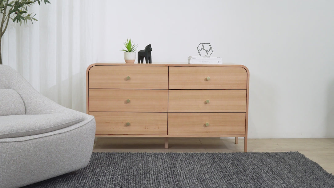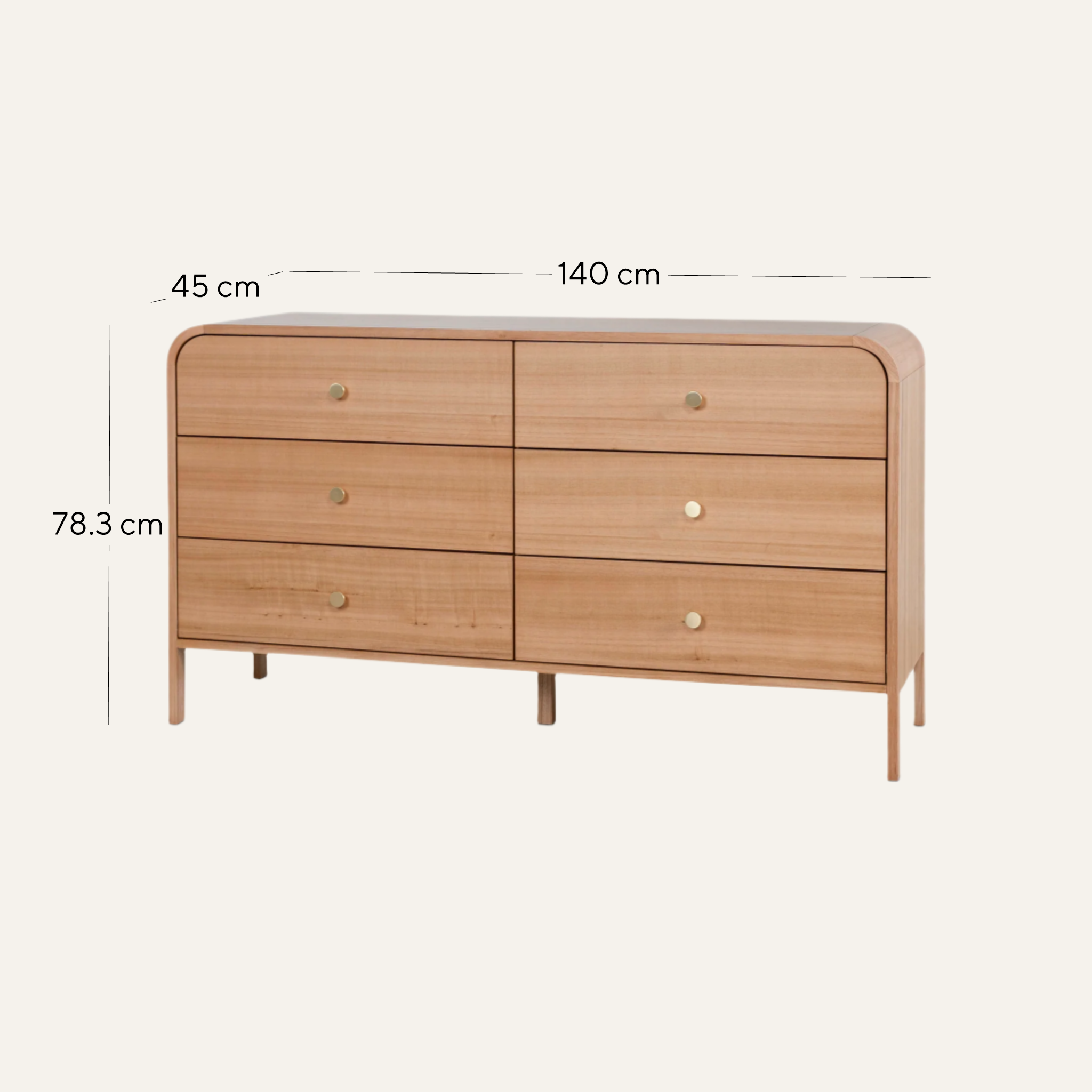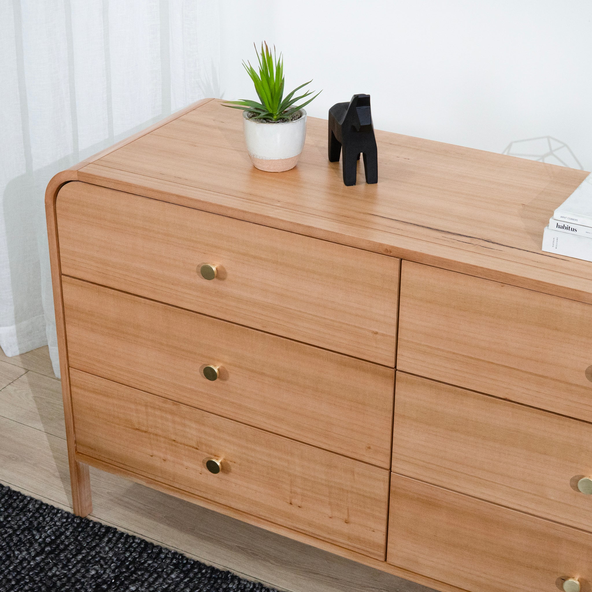 The gracefully rounded corners evoke a sense of calm, while the smooth silhouette and flush-front detailing offer a quiet sophistication that transcends trends. Designed to blend seamlessly into curated interiors, Serene 1.4m Dresser Unit in Messmate anchors the room with both form and function.