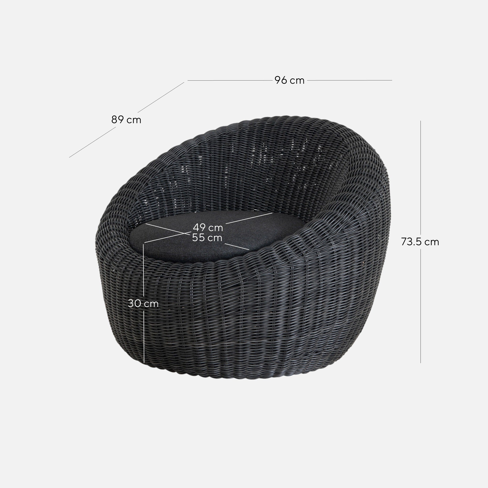 Designed to enhance modern aesthetics, the Sereno Outdoor Lounge Chair in Full Black features a sleek black finish and a sophisticated silhouette, effortlessly elevating any outdoor setting.