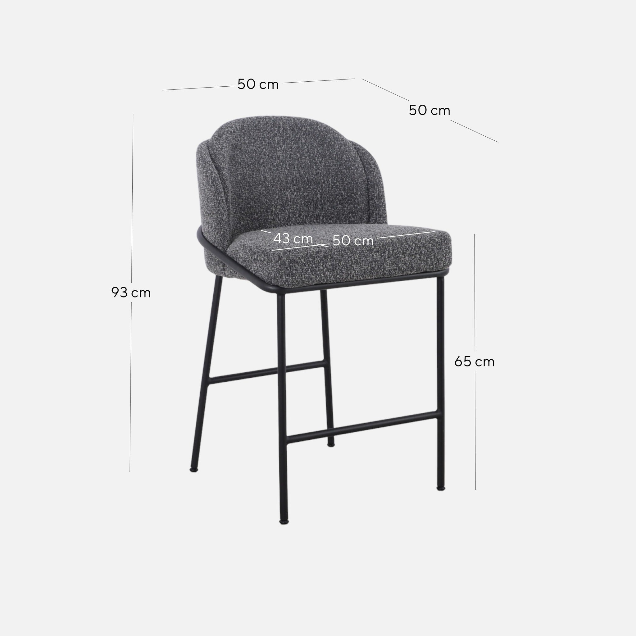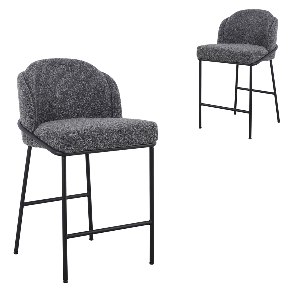 Set of 2 - Abiram 65cm Bar Stool - Anthracite Grey Boucle - Last Set