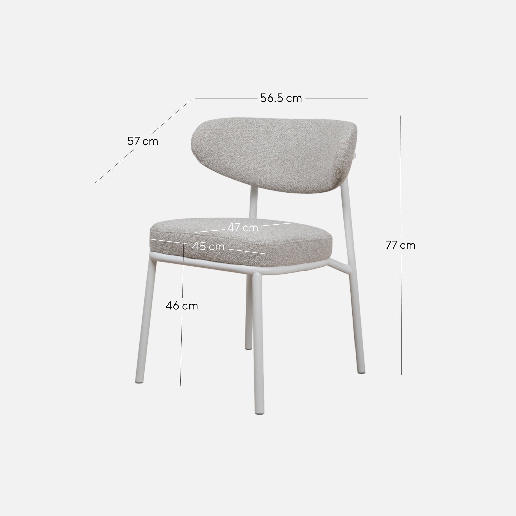Designed for comfort without compromising on style, the Ambrosi White Dining Chairs boast a streamlined silhouette that effortlessly enhances the visual appeal of your dining area. The crisp white upholstery beautifully contrasts with the cool Clay Grey frame, creating a balanced and timeless aesthetic.