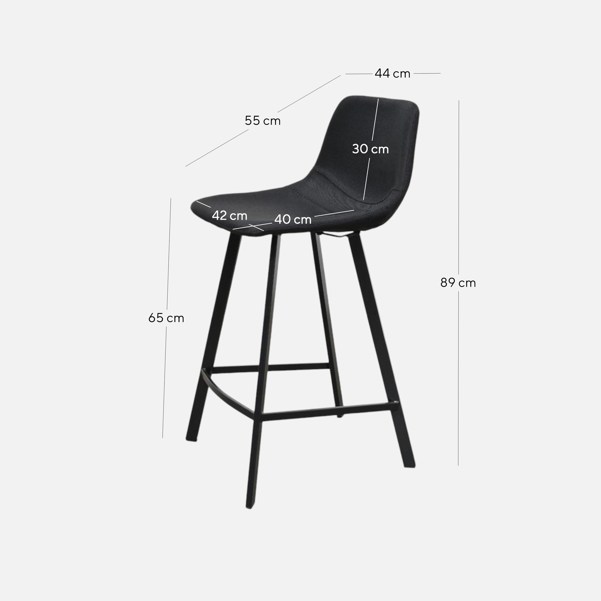 Set Of 2 - Duke 65cm Fabric Bar Stool - Black