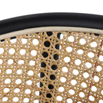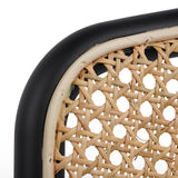 - Generous backrest curved and supported with natural rattan