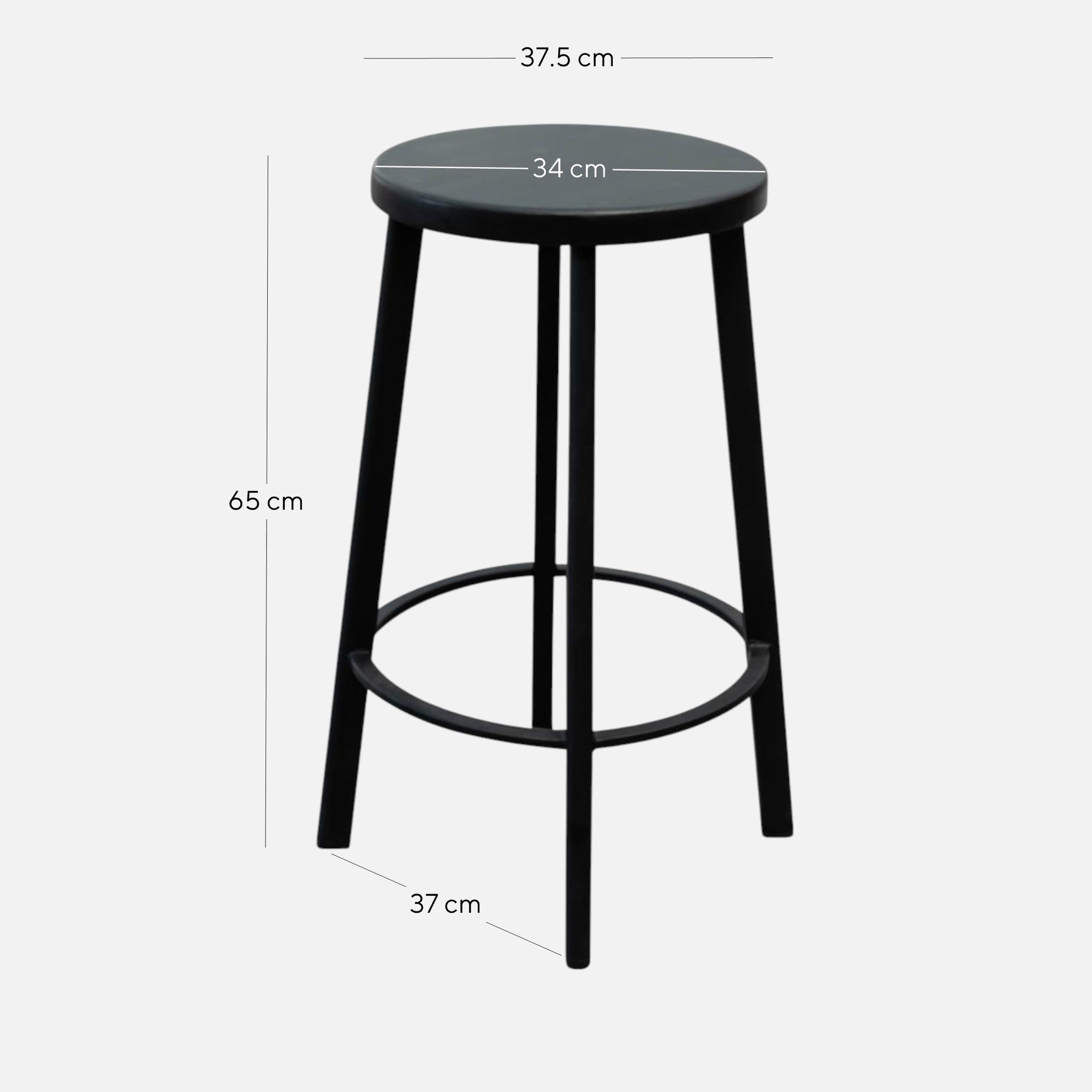 Emulate a modern bar look at your dining or bar counter with the chic James 65cm Timber Seat Bar Stool - Black. Finished in a stark monochrome look, this round bar stool lets you sit from any angle with comfort. The clean curved lines of James will also offset the straighter and sharp angles of your furnishing for a well-balanced decor.