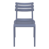 Exquisitely crafted in Europe with air moulding technology, this Keller Indoor / Outdoor Dining Chair - Grey stackable chair boasts a neutral, refined aesthetics due to its polypropylene and glass fibre constitution. Further, CATAS tested for indoor/outdoor use and stackable up to 4-6 high, this chair conveys unparalleled sophistication.