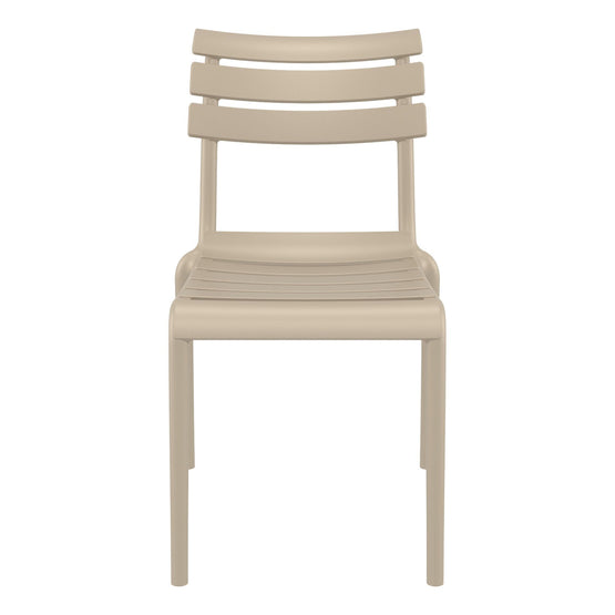 Exquisitely crafted in Europe with air moulding technology, this Keller Indoor / Outdoor Dining Chair - Taupe stackable chair boasts a neutral, refined aesthetics due to its polypropylene and glass fibre constitution. Further, CATAS tested for indoor/outdoor use and stackable up to 4-6 high, this chair conveys unparalleled sophistication.