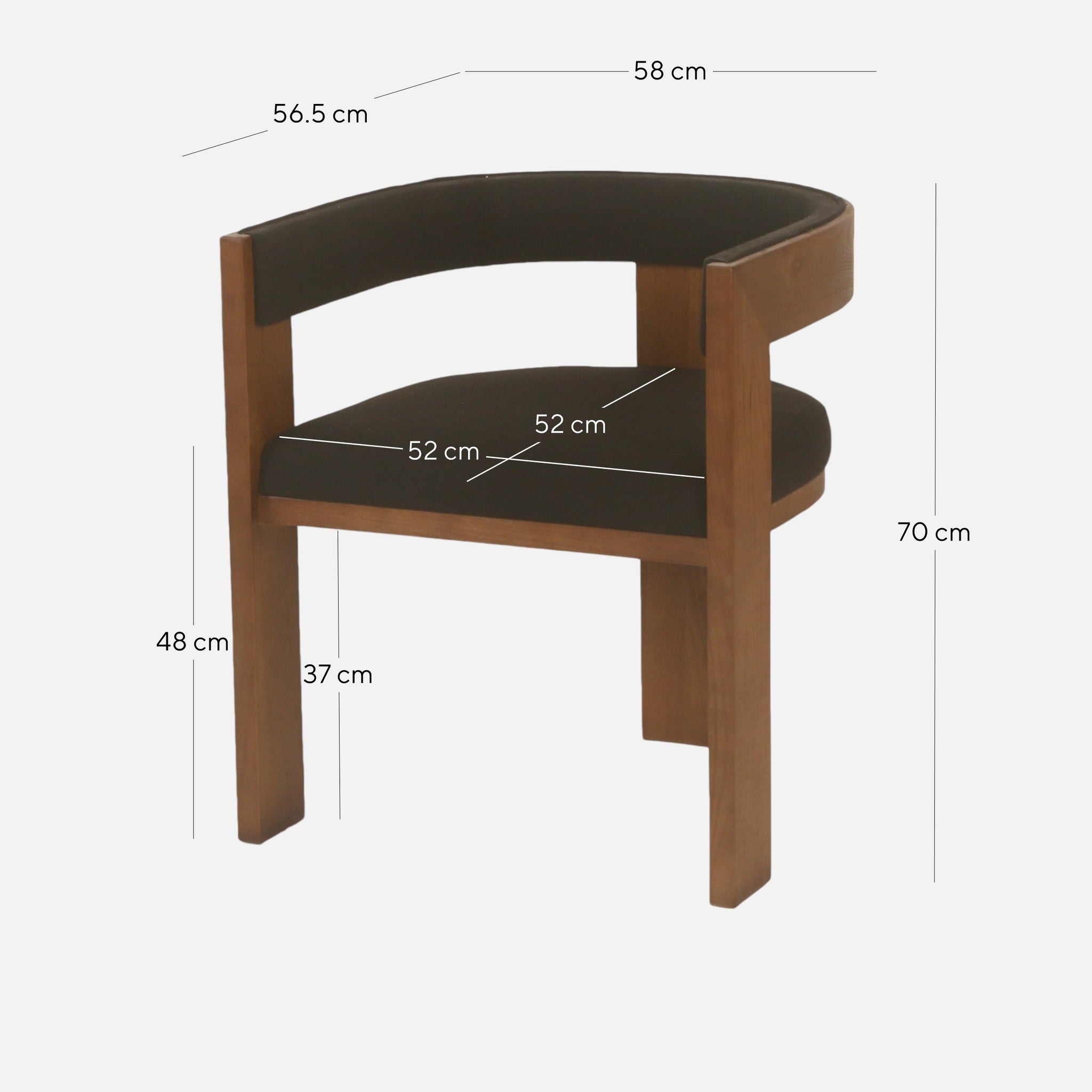 Overall: 58cm (W) x 56.5cm (D) x 70cm (H) Seat: 52cm (W) x 52cm (D) x 48cm (H) Arm Height: 70cm Leg Height: 37cm