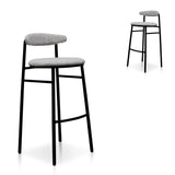 Set of 2 - Oneal 65cm Fabric Bar Stool - Silver Grey and Black Legs