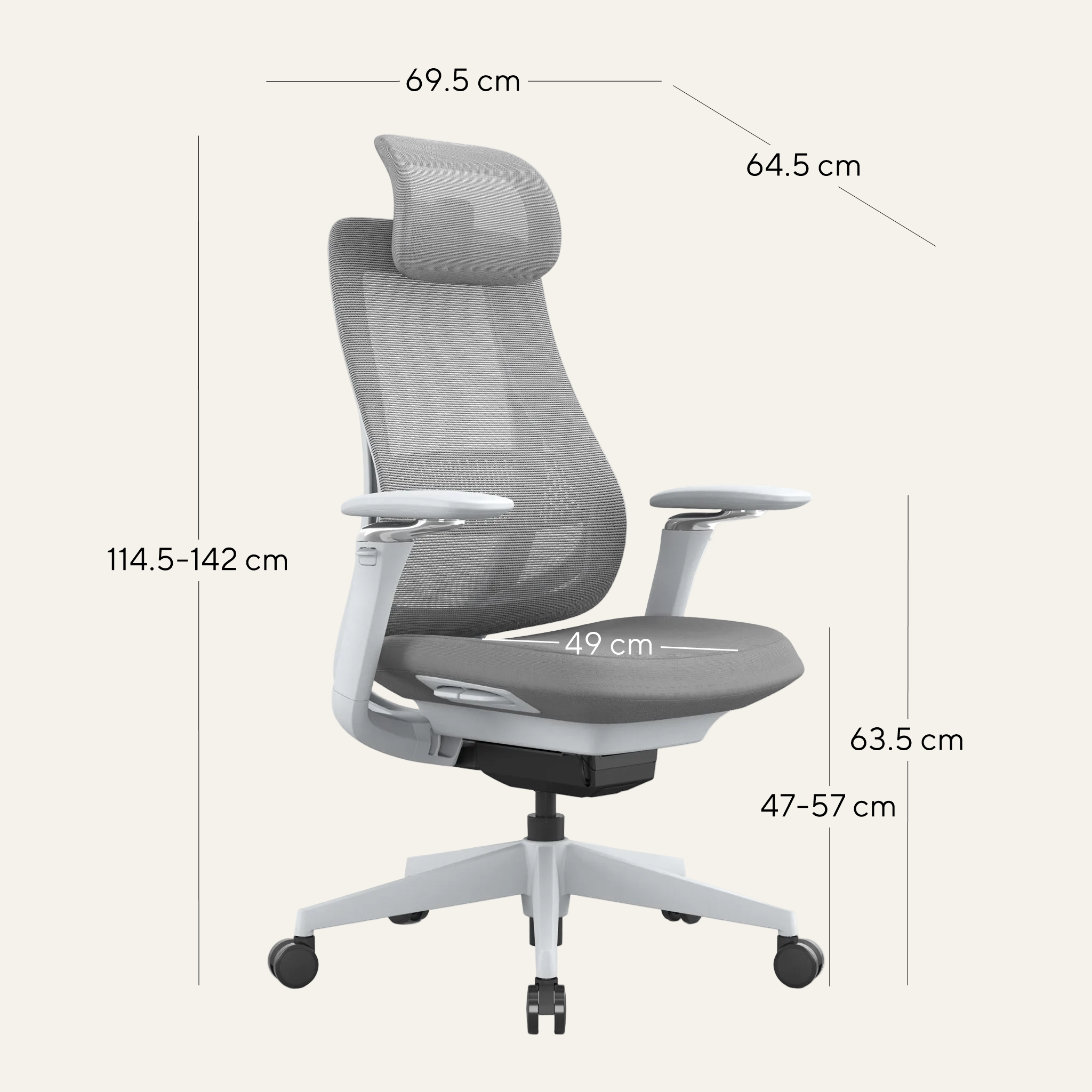 Sevanto Mesh Office Chair - Light Grey with Headrest