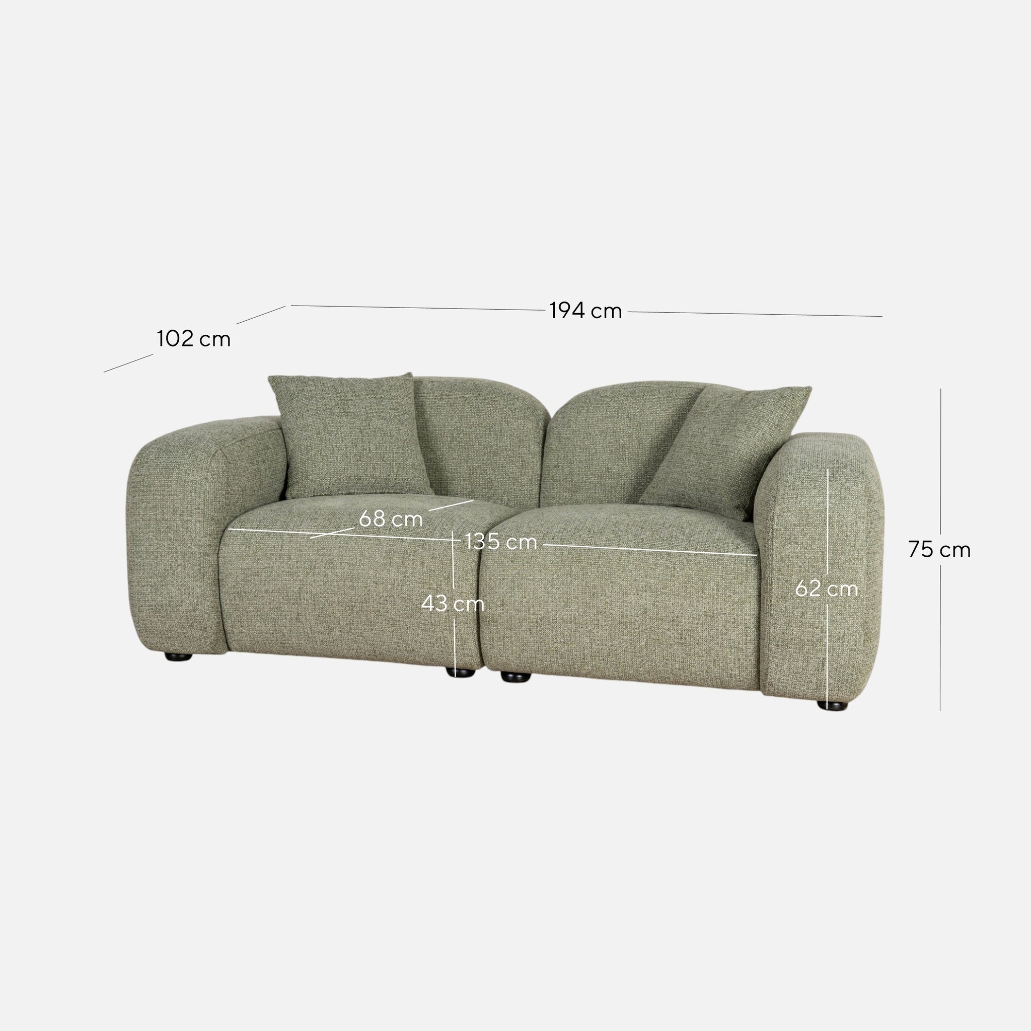 Overall: 194cm (W) x 102cm (D) x 75cm (H) Seat: 135cm (W) x 68cm (D) x 43cm (H) Arm Height: 62cm Leg Height: 3cm
