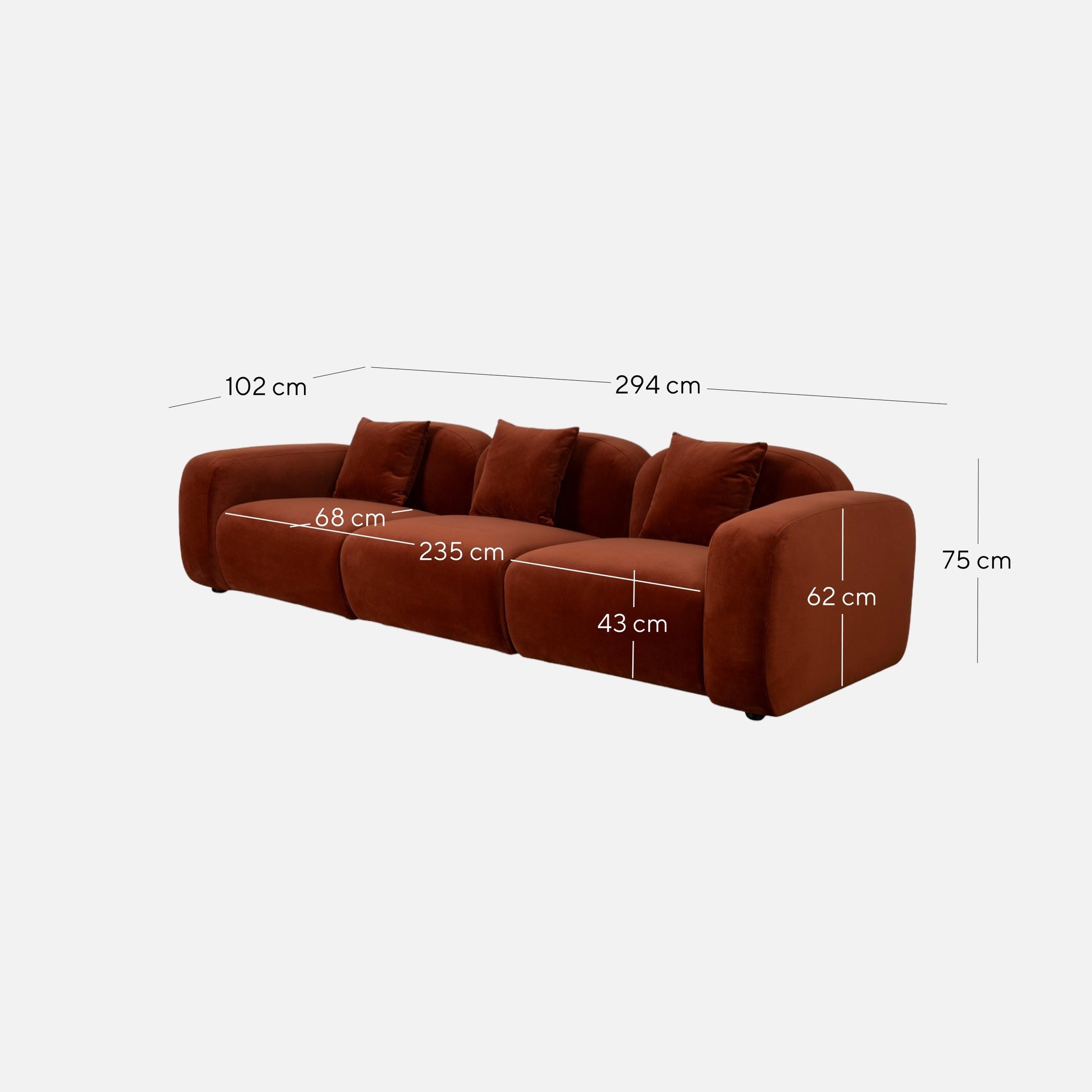 Overall: 294cm (W) x 102cm (D) x 75cm (H) Seat: 235cm (W) x 68cm (D) x 43cm (H) Arm Height: 62cm Leg Height: 3cm