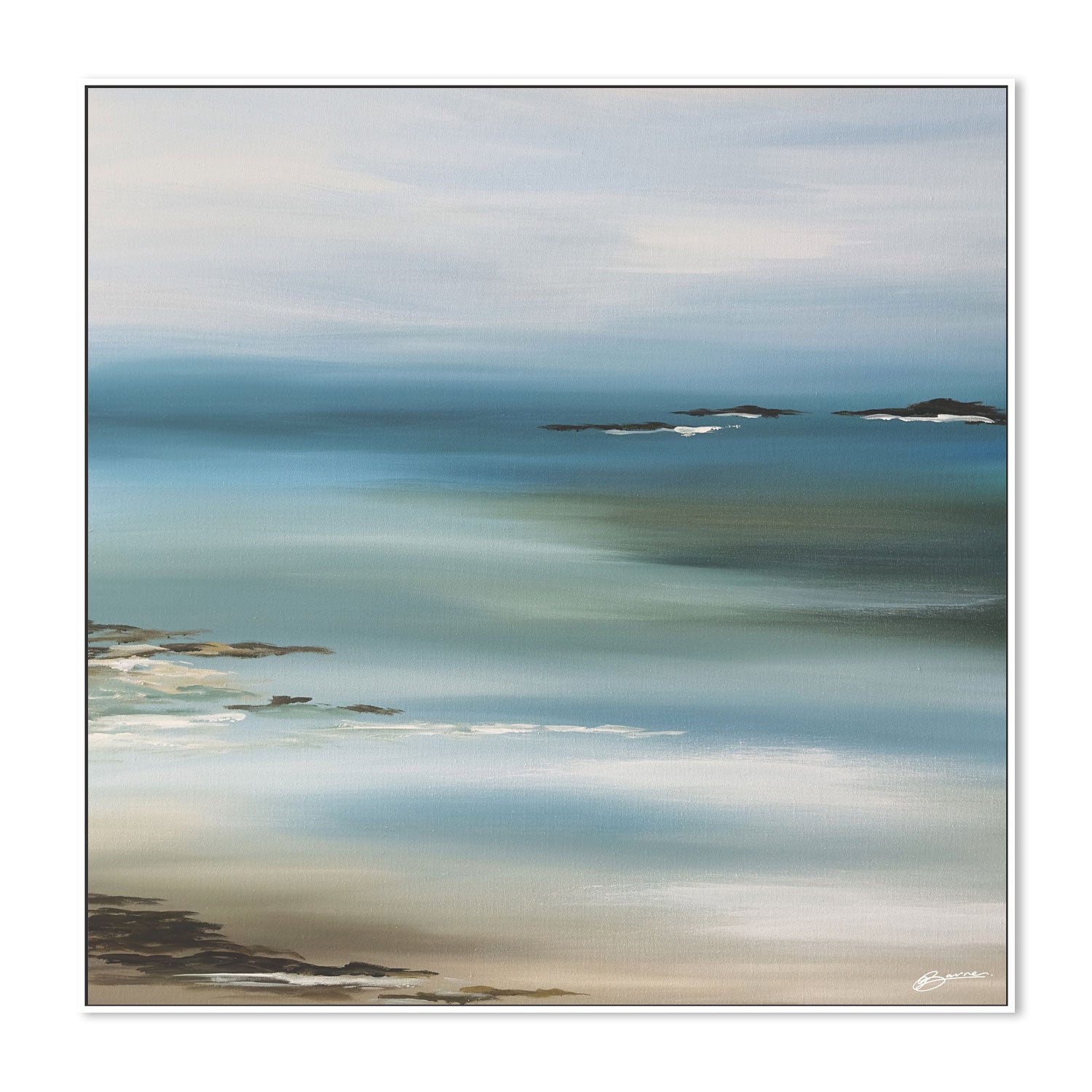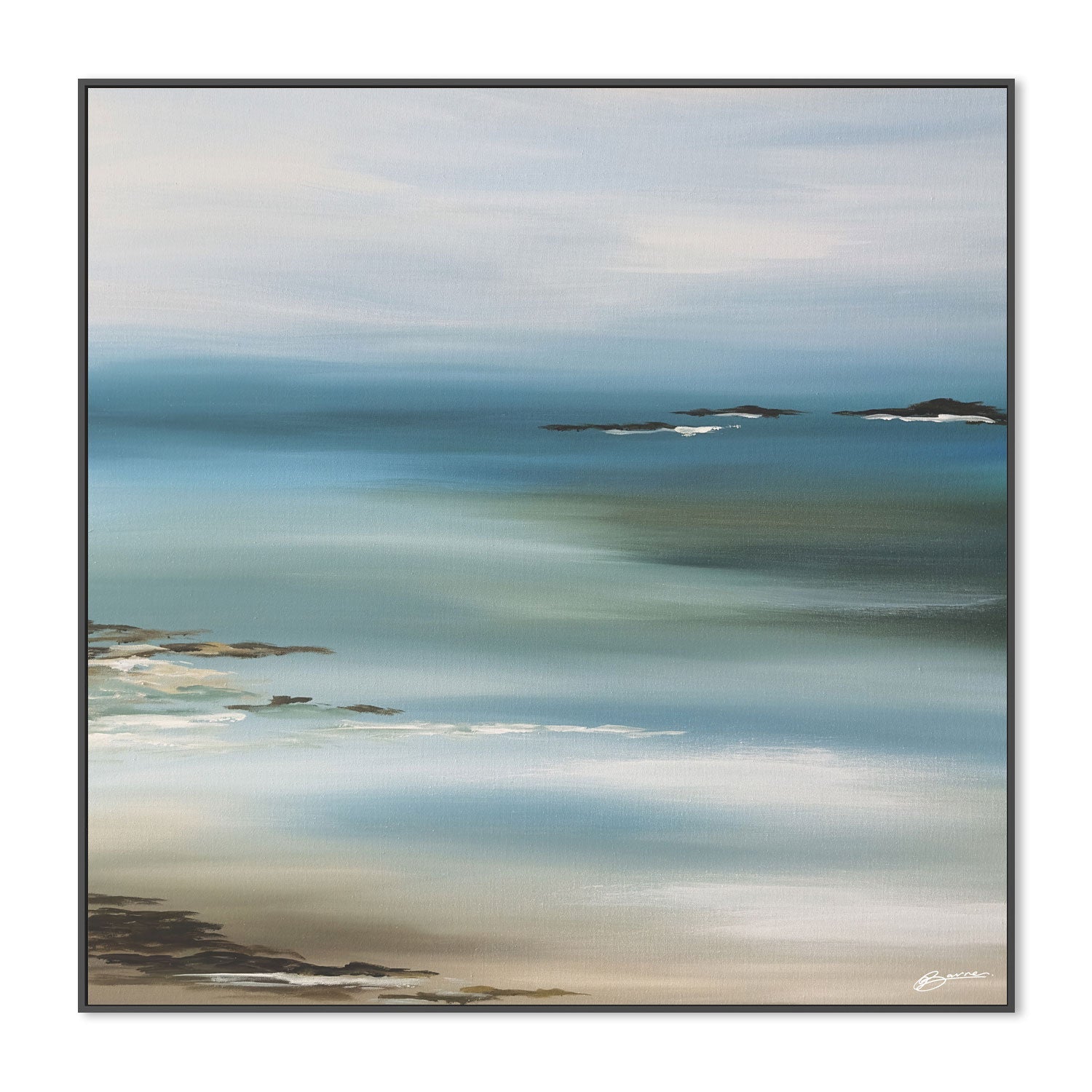 Unwind and relax with Soothing Secrets, By Joanne Barnes. This framed coastal landscape by Gioia Wall Art brings a peaceful ambiance to any space with its calming blue and earthy tones. Perfect for creating a tranquil atmosphere in both modern and classic interiors.