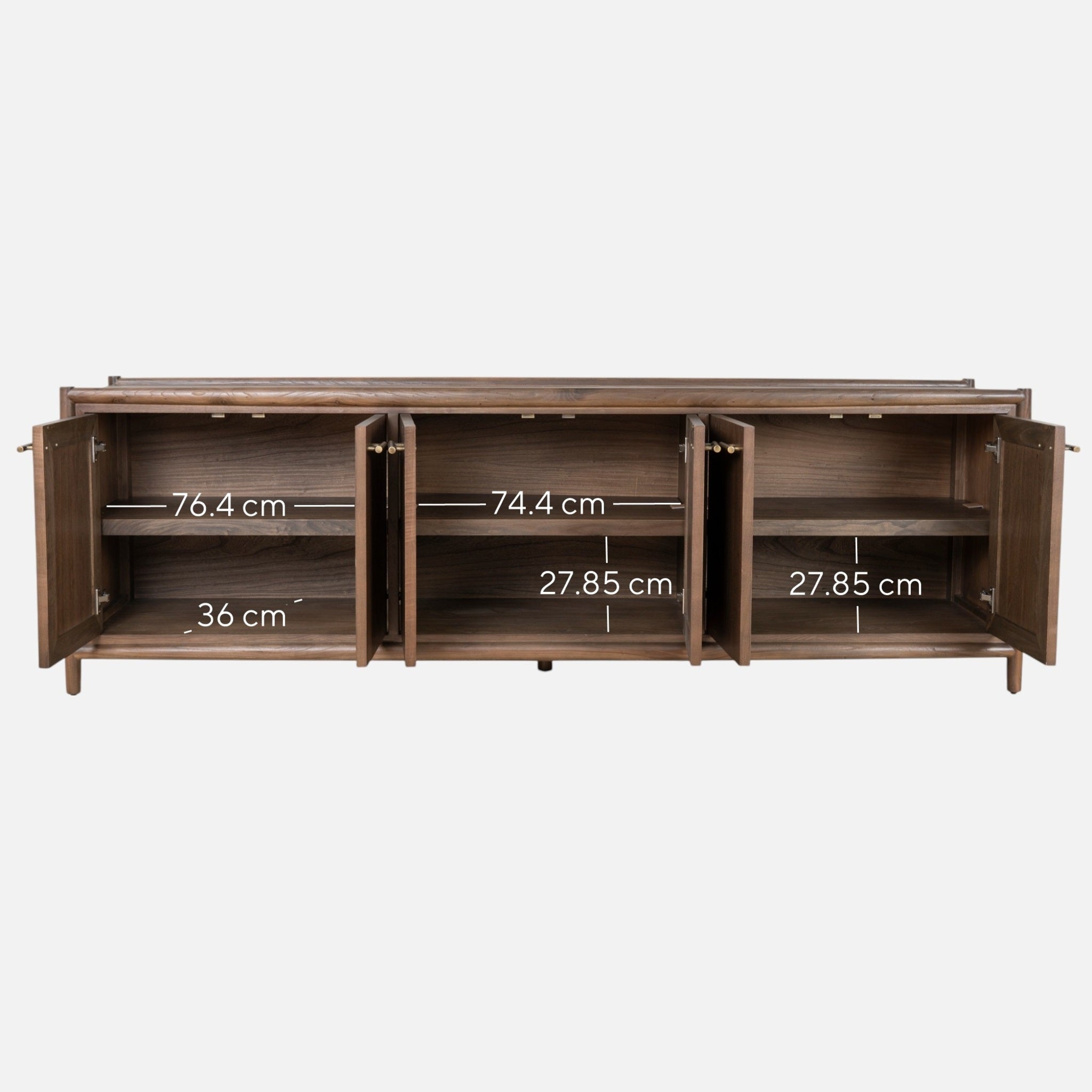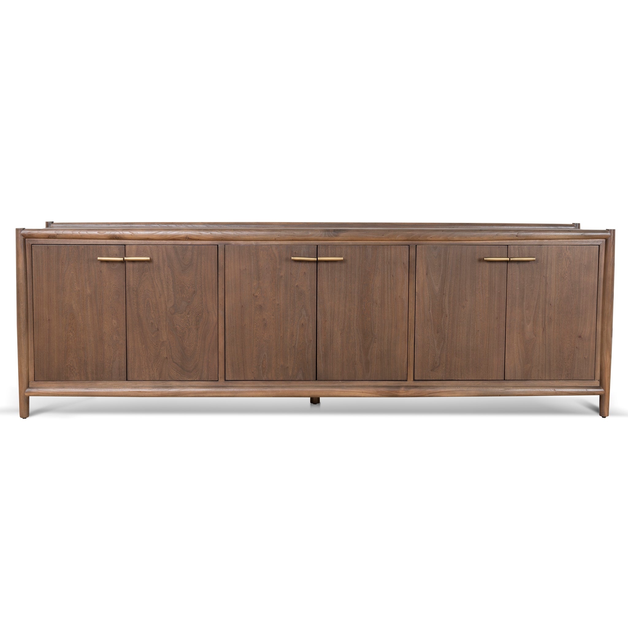 The walnut sideboard combines rich wood tones with modern functionality, ideal for stylish storage.