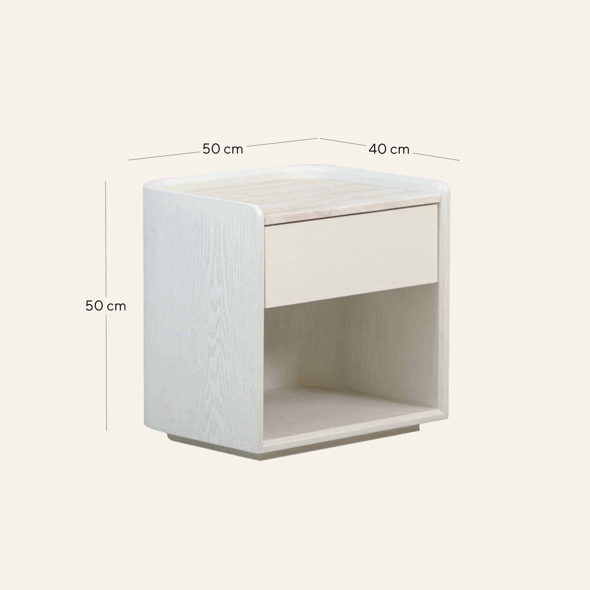 Sorell 50cm Travertine Bedside Table - Ivory Oat