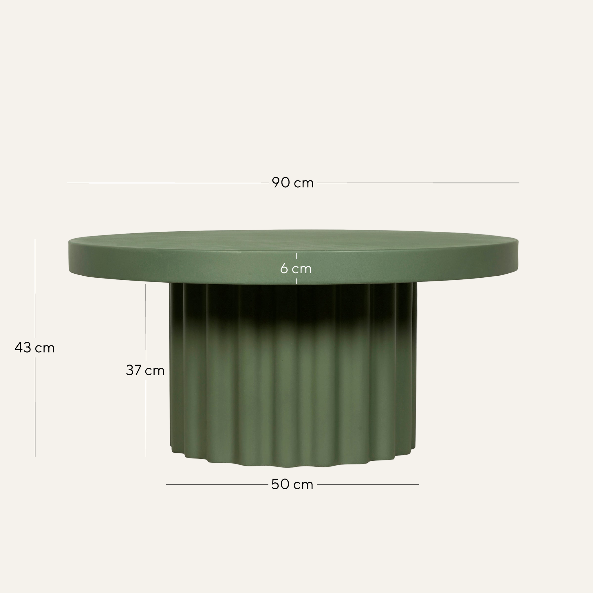 Compact yet impactful, the Sovana 90cm Concrete Coffee Table in Green is ideal as a centerpiece in living rooms, lounges, or open-plan spaces. Its calming hue harmonizes beautifully with stone, timber, or neutral palettes, adding an effortless layer of sophistication and balance.