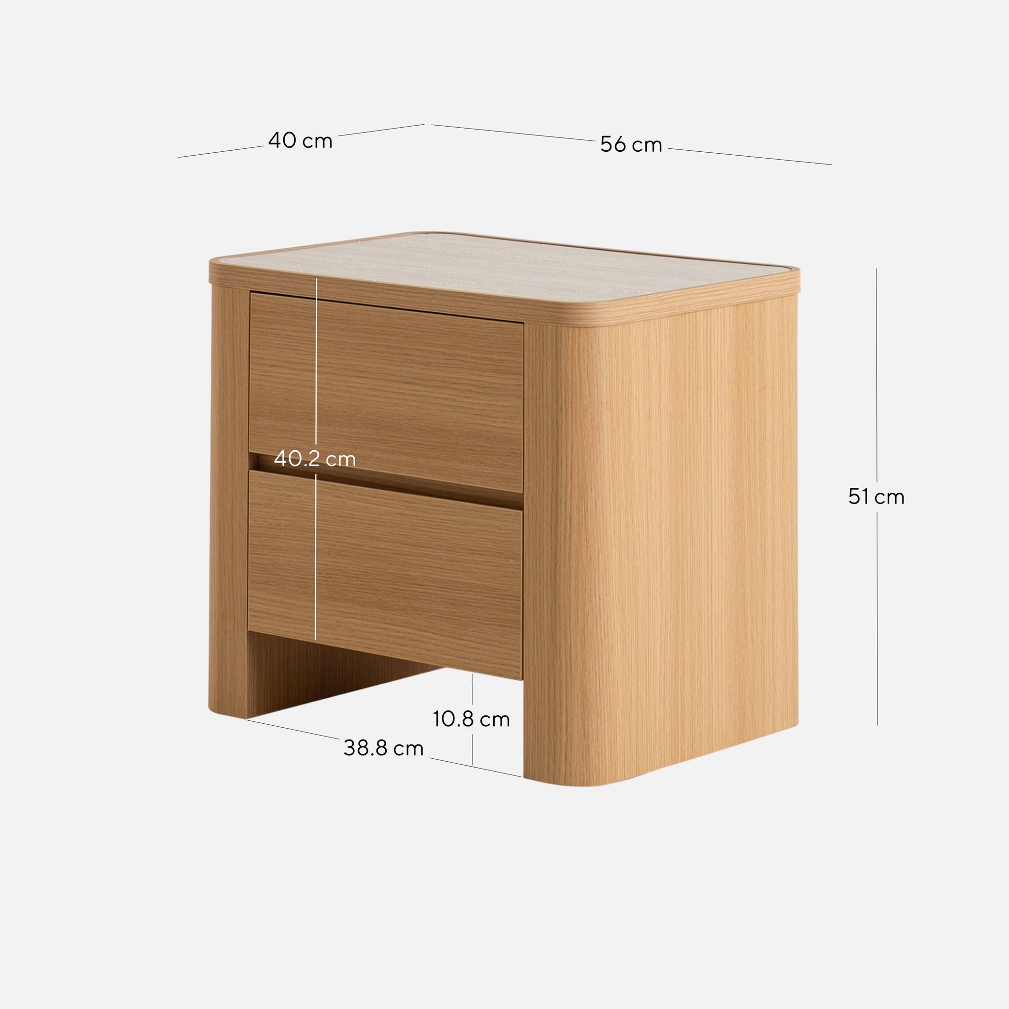 Overall: 56cm (W) x 40cm (D) x 51cm (H) Cabinet: 56cm (W) x 40cm (D) x 40.2cm (H) Leg Height: 10.8cm Distance between legs: 38.8cm Drawer: 32.9cm (W) x 30.5cm (D) x 13.5cm (H)