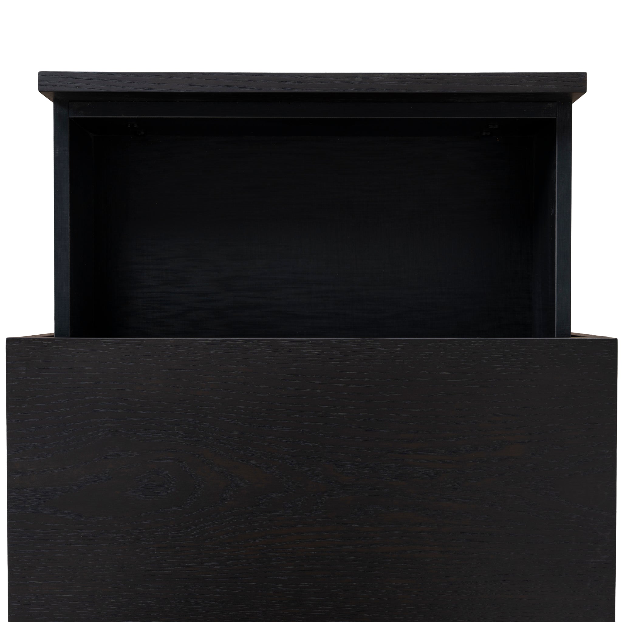 Strado 55cm Bedside Table in Dark Walnut showcases a seamless blend of natural texture and modern design. Its deep walnut tone brings warmth and character to any space. Finished in smooth matte, it highlights the rich, organic beauty of the wood grain.