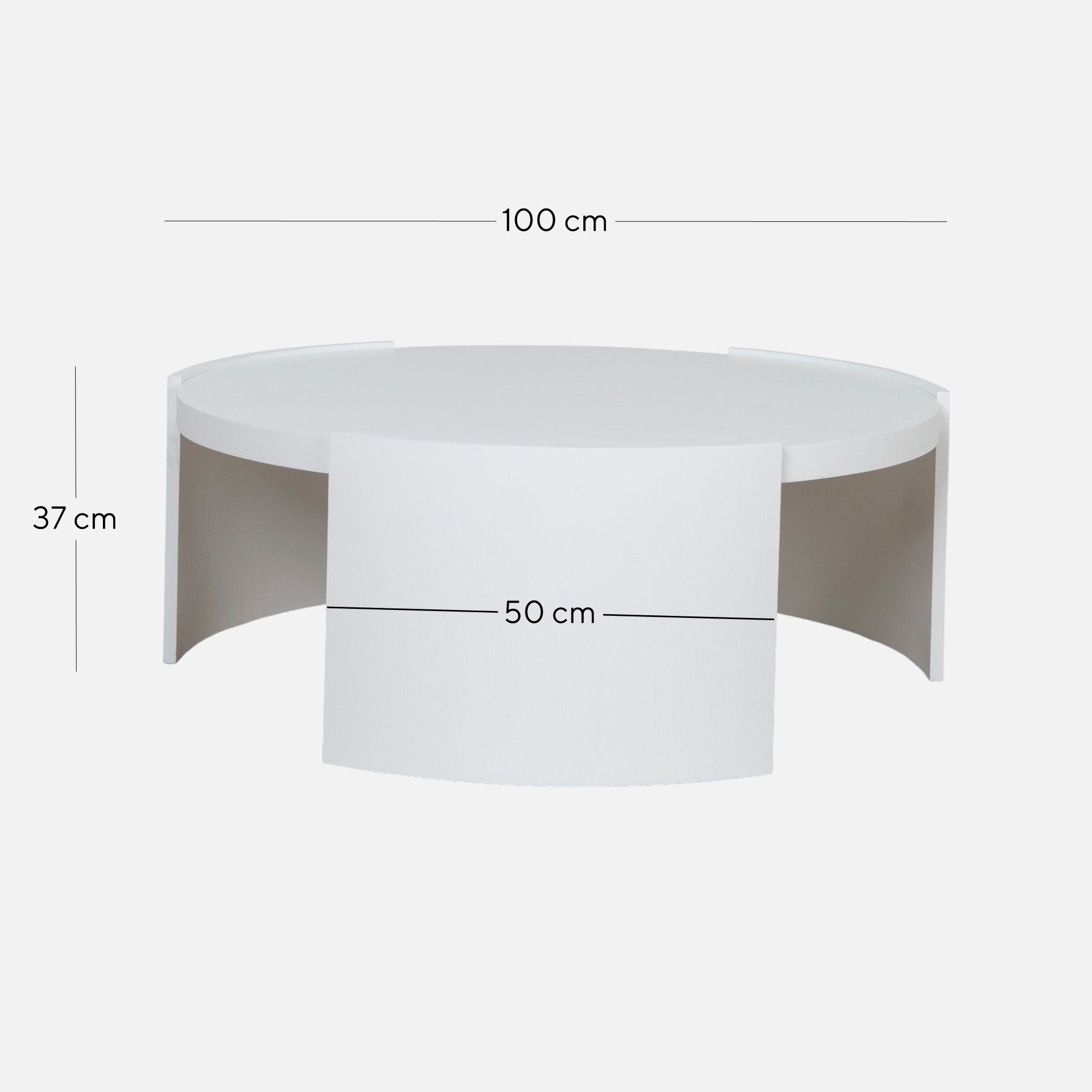 - Round table top in a smooth white finish