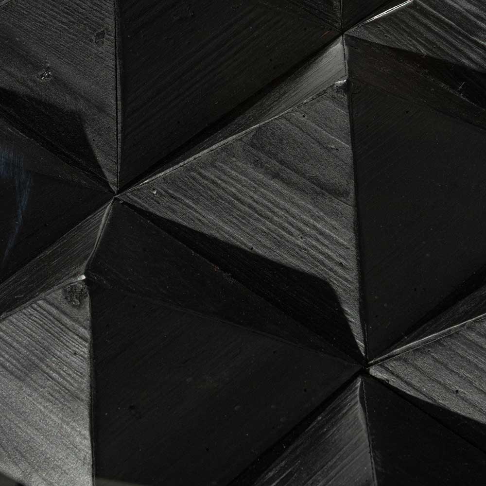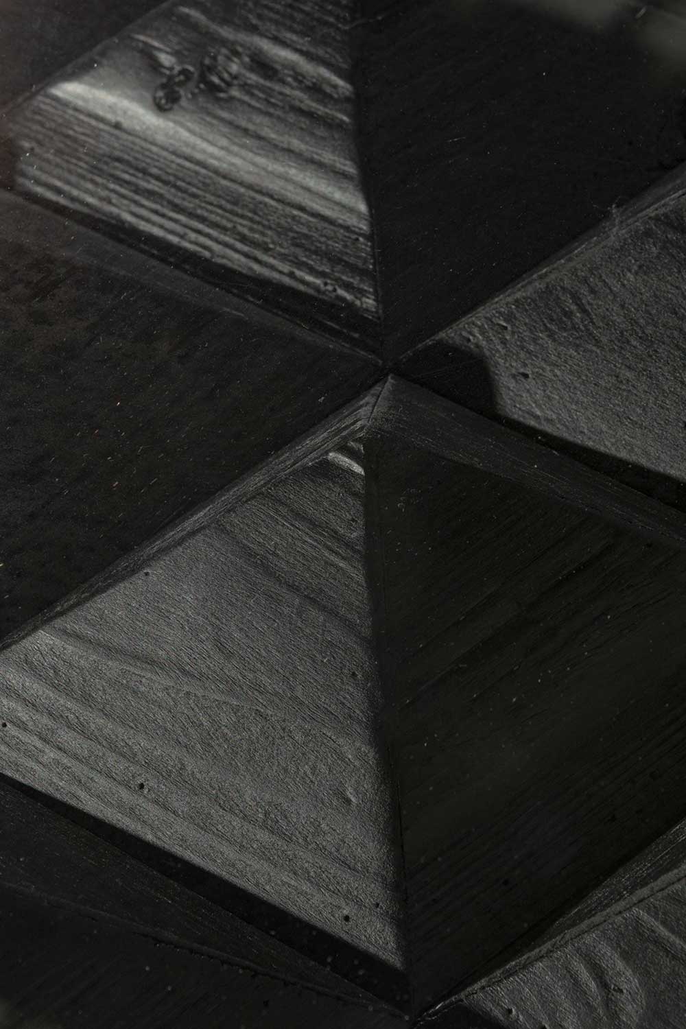 - Polished glass overlay with pyramid-shaped raised inner panels