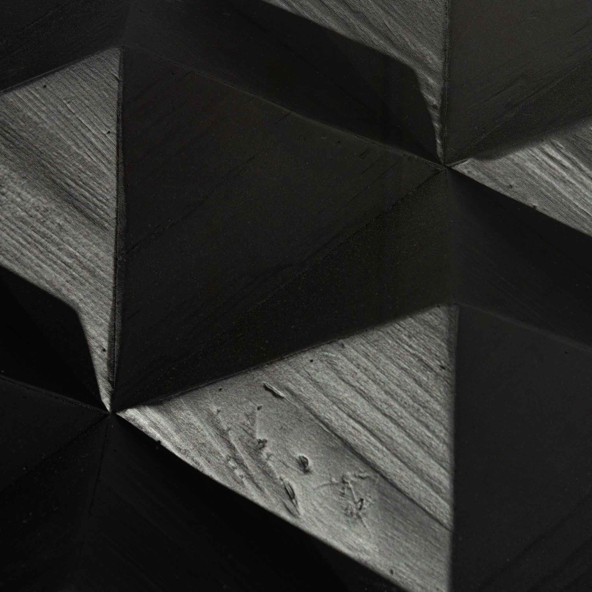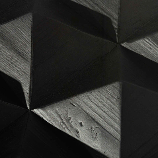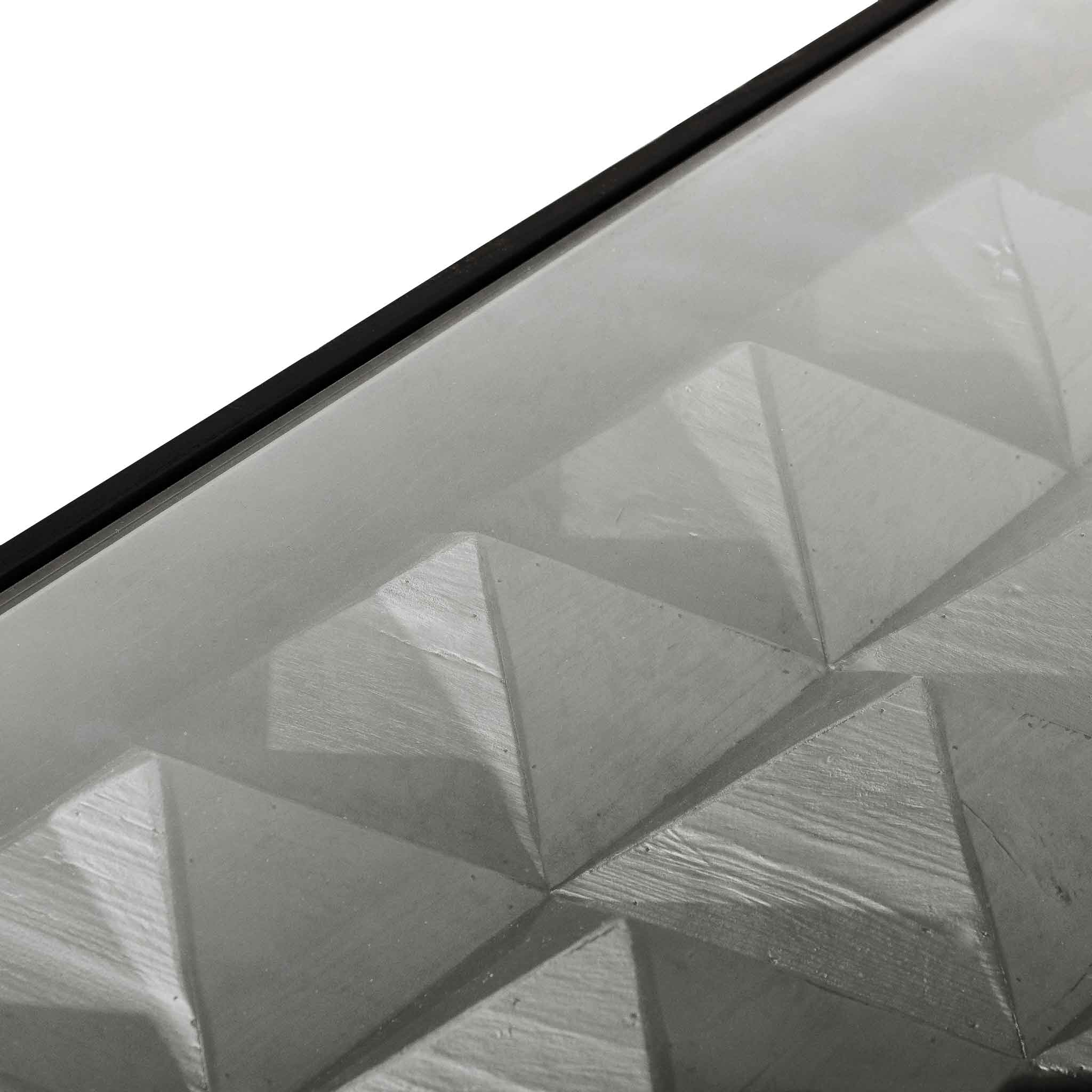 - Polished glass overlay with pyramid-shaped raised inner panels