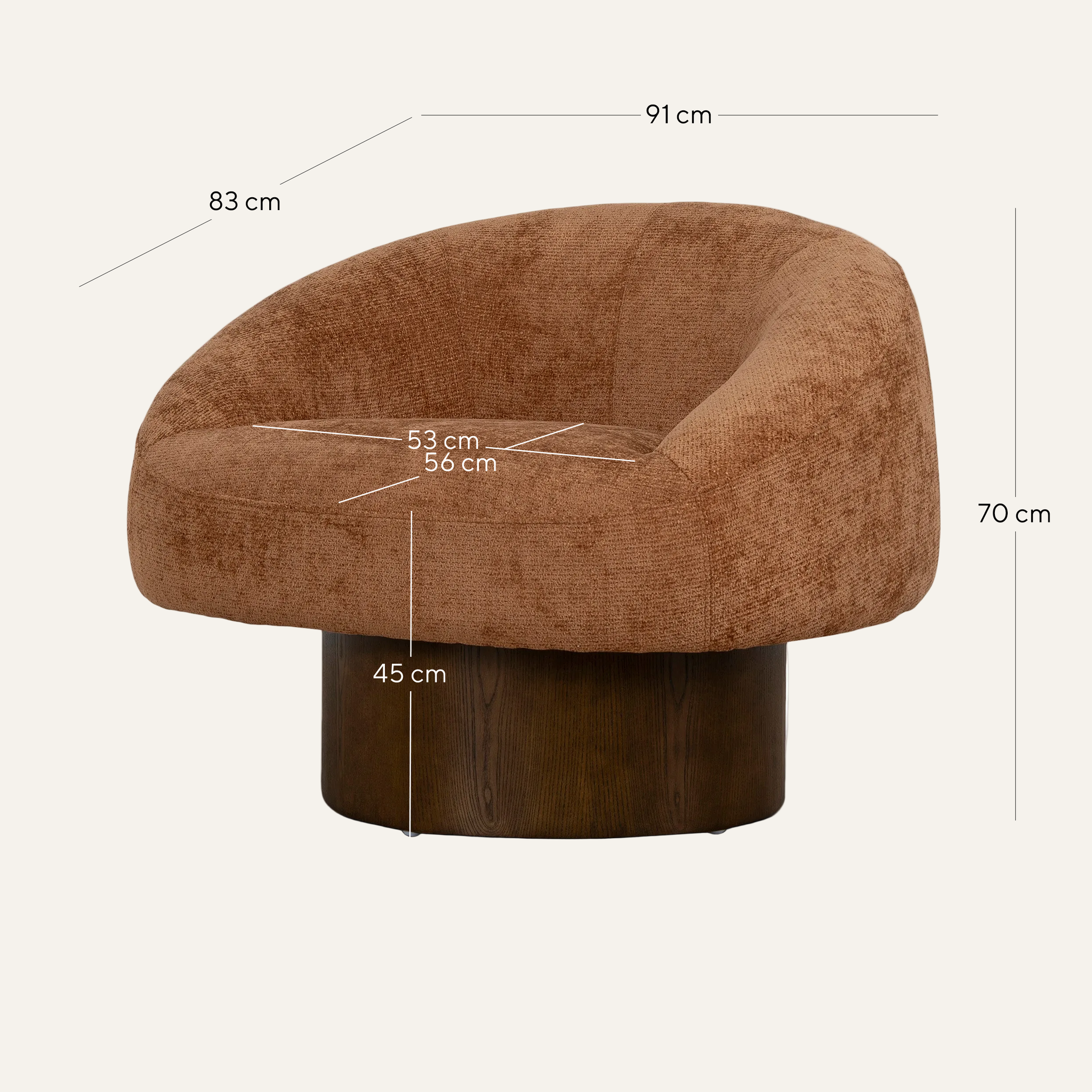 Overall: 91cm (W) x 83cm (D) x 70cm (H) Seat: 53cm (W) x 56cm (D) x 45cm (H) Arm Height: 70cm