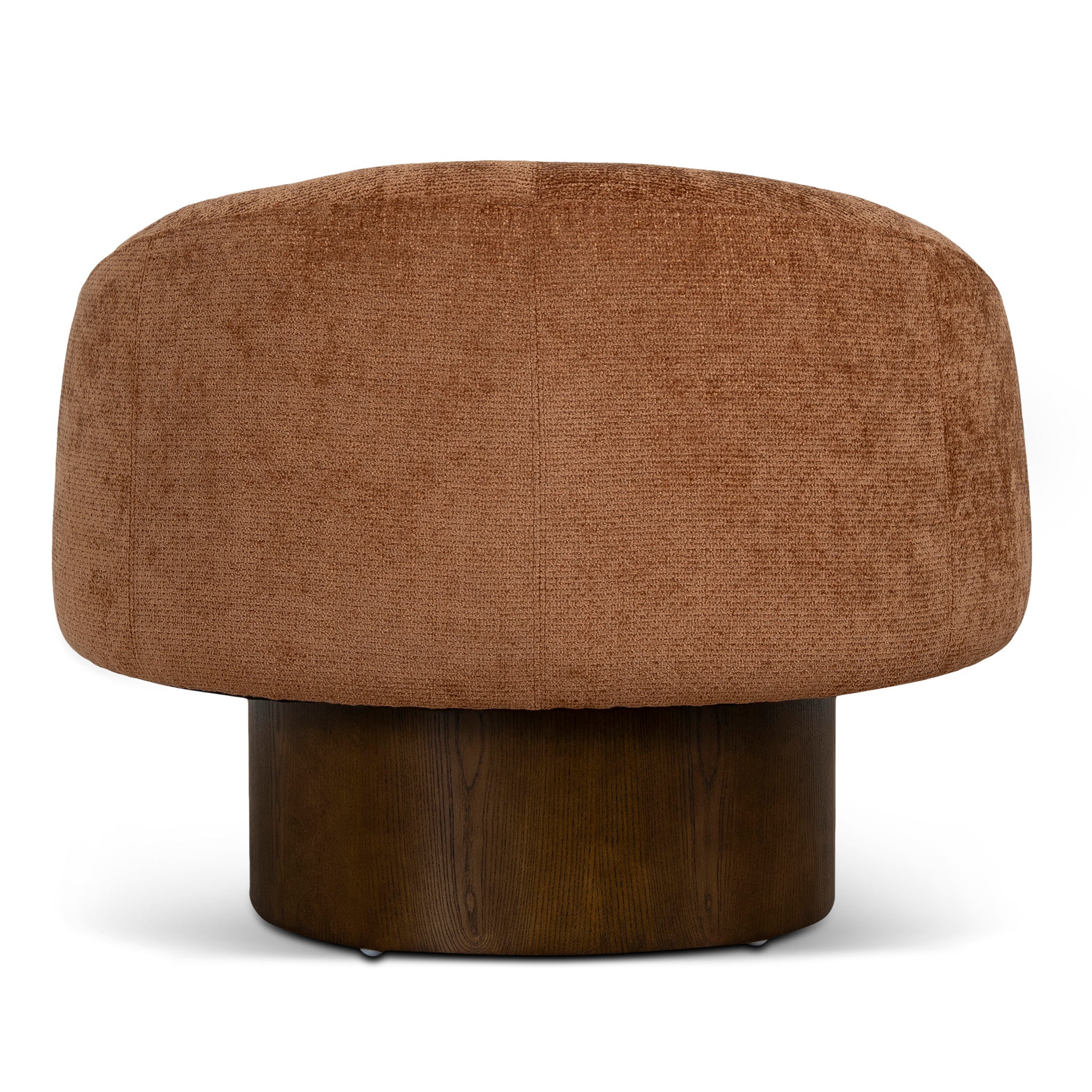 A gently contoured profile gives the Tessaro Walnut Armchair in Lila Copper a composed yet inviting presence. The warm upholstery introduces depth and character, while the grounded timber base adds contrast and stability.