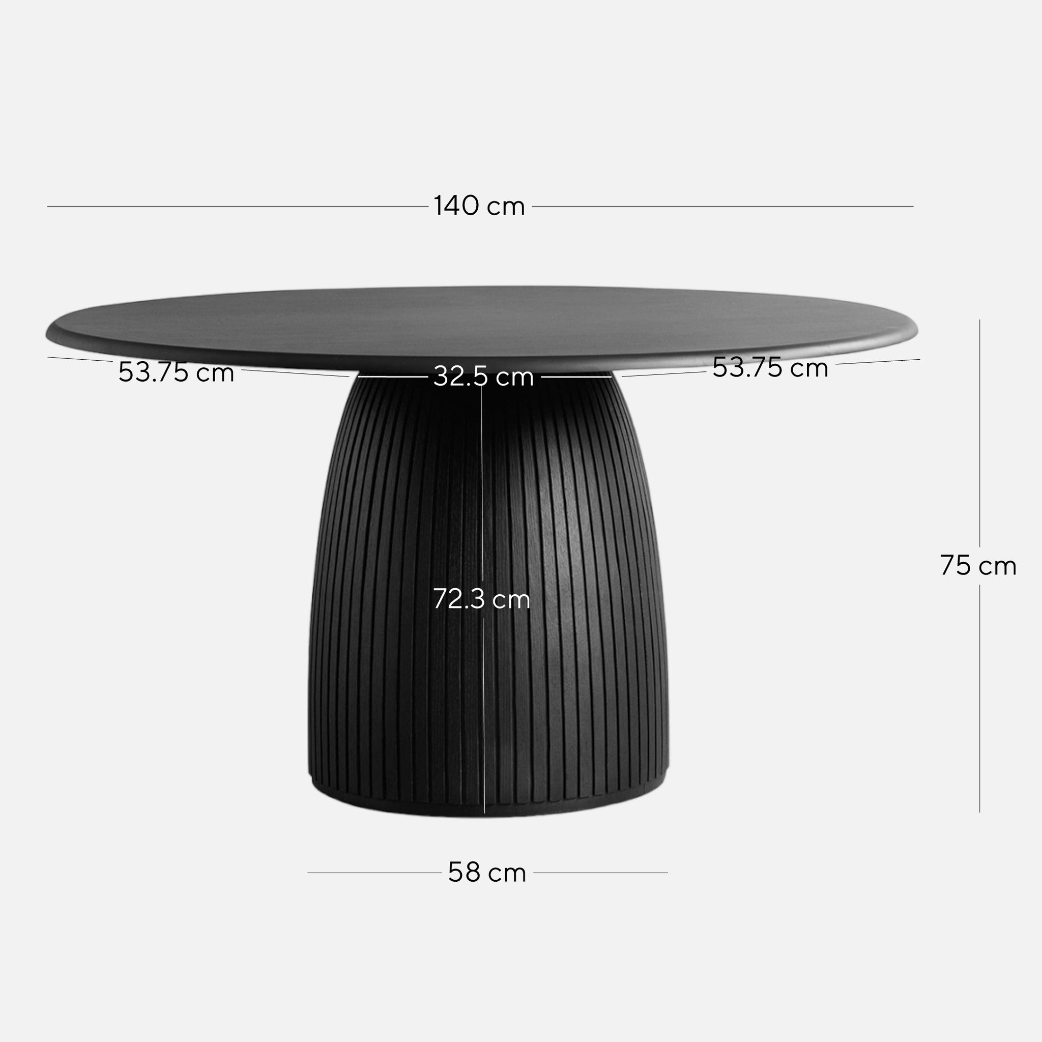 The black finish and round shape of this dining table create a modern and elegant look. The Tonya 1.4m Round Dining Table in full black is the perfect blend of elegance and versatility, making it a must-have for any modern dining space.