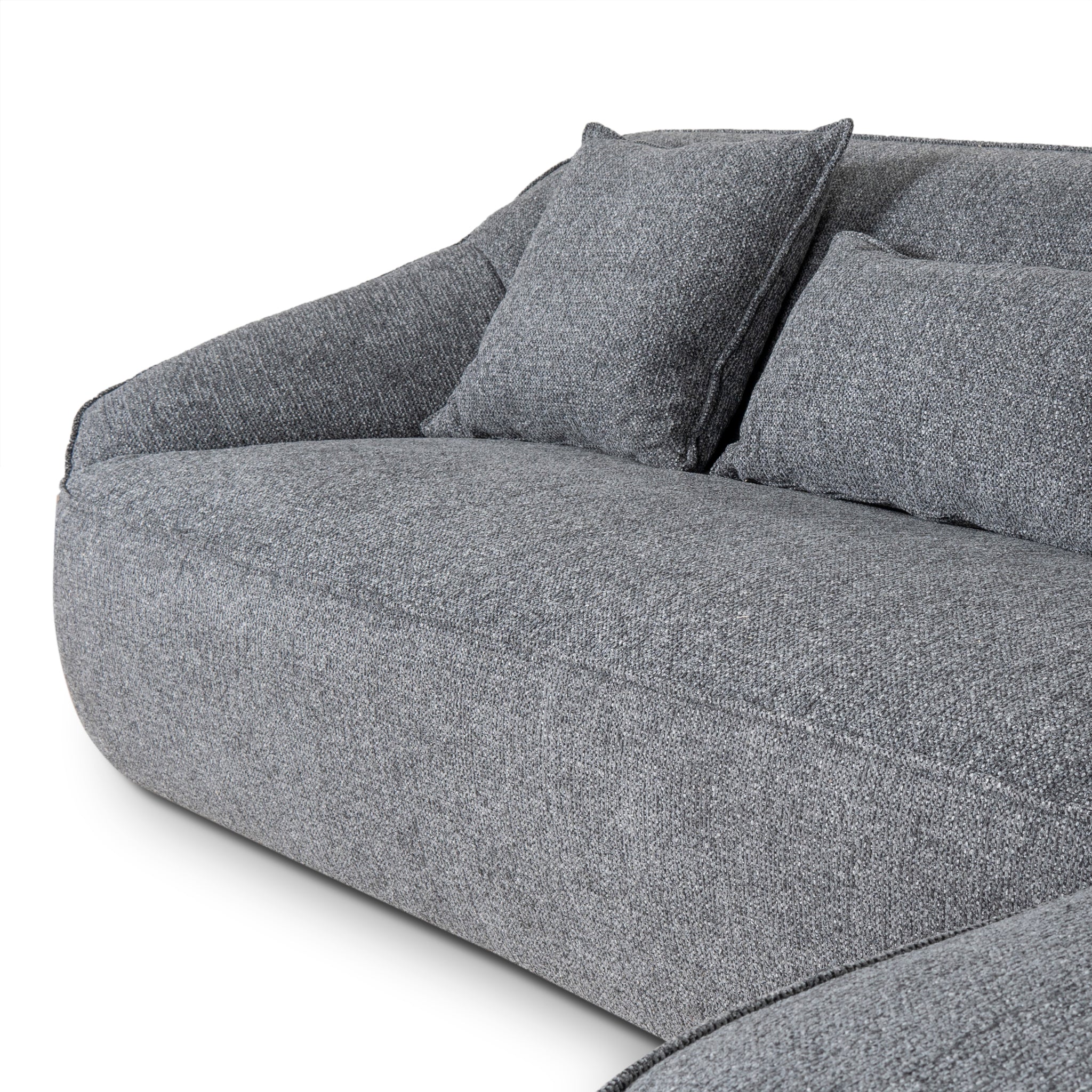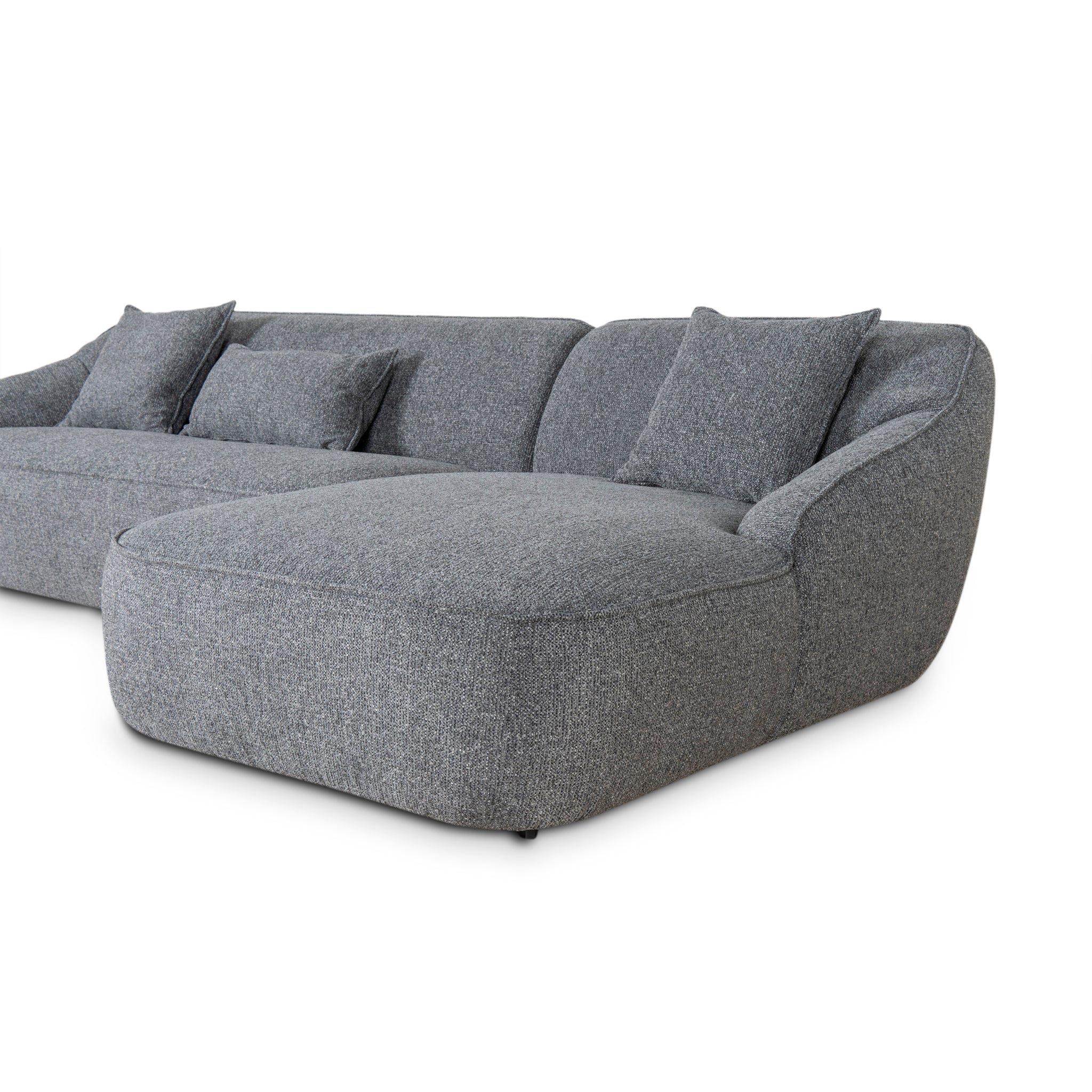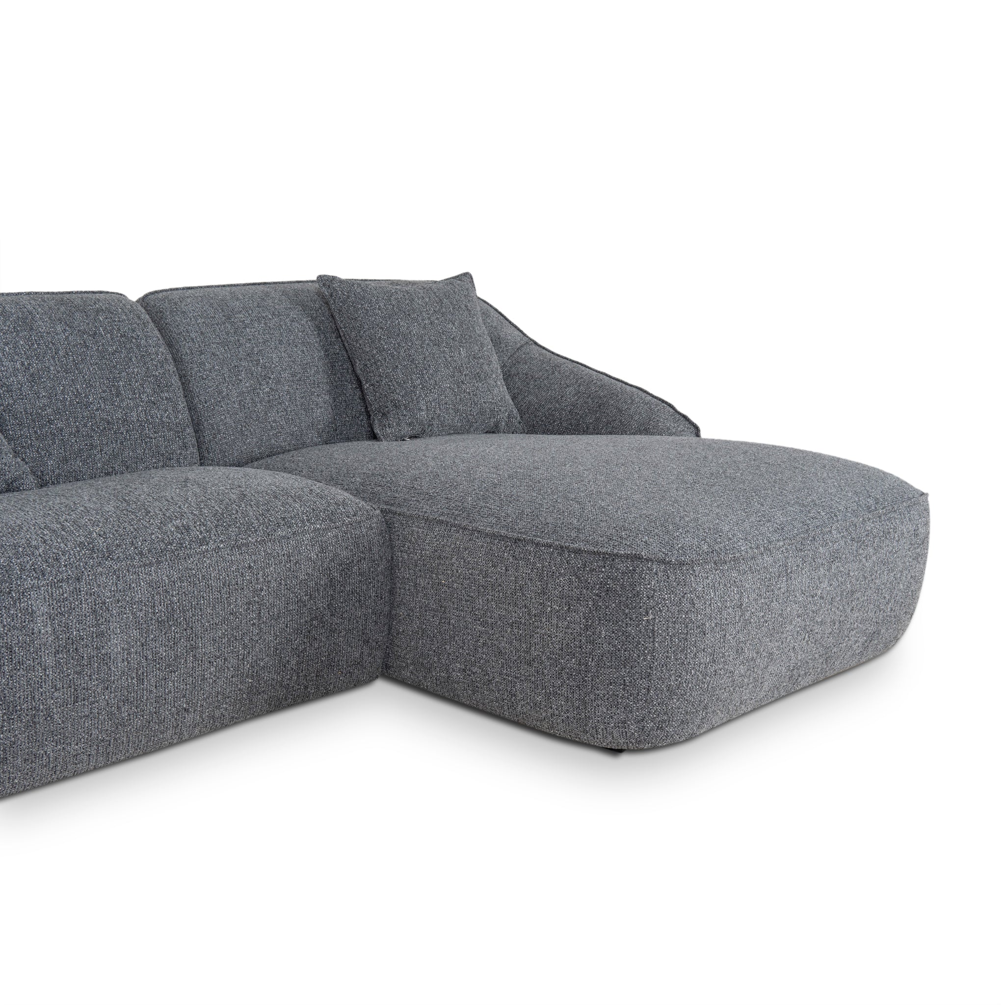 Enjoy plush comfort and sophisticated style with the Trude Right Chaise Sofa - Coral Charcoal. Its elegant design seamlessly blends modern aesthetics with timeless elegance.