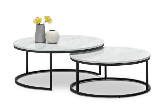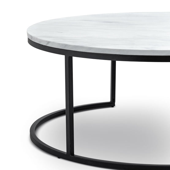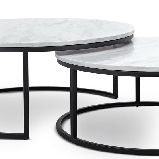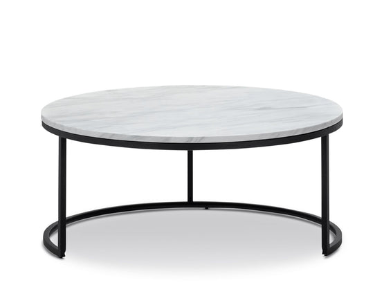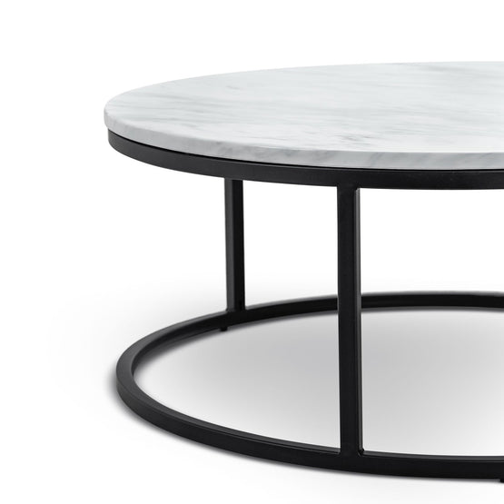 Tundra Round Nest White Marble Coffee Table - Black