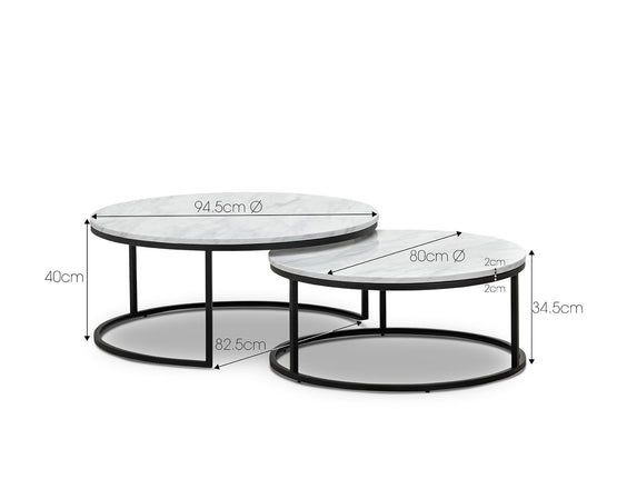 Create captivating layers in your living room space thanks to Tundra Round Nest White Marble Coffee Table - Black. Its high-end form, crafted with a geometric steel base will infuse your space with an elevated sense of style and elegance. A white coffee table, with its pristine and versatile appeal, serves as a striking centerpiece in a living space. Its clean lines and neutral hue make it a versatile addition that seamlessly blends into various décor styles, from modern minimalism to coastal chic.