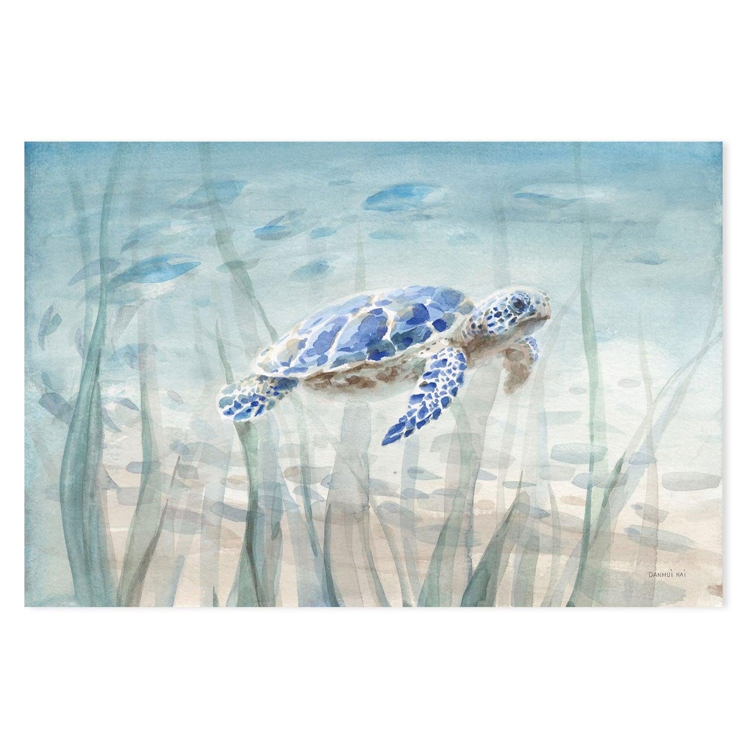 Dive into serenity with Undersea Turtle by Danhui Nai. This tranquil artwork showcases a graceful turtle in soothing blue and green tones, adding a calming coastal vibe to any space. Frame and printed by Gioia Wall Art.