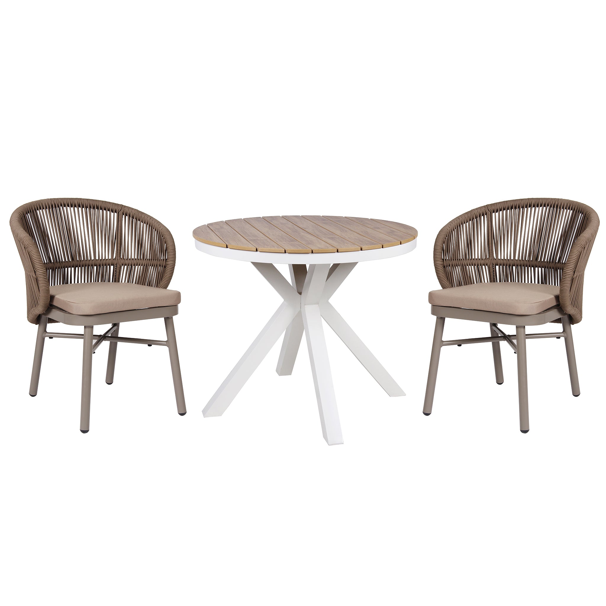 The Vanesa 90cm Round Sand White Outdoor Dining Table exudes natural charm, effortlessly enhancing any outdoor space with its stylish and inviting design. Perfect for intimate meals or social gatherings, it elevates every moment with its refined elegance.