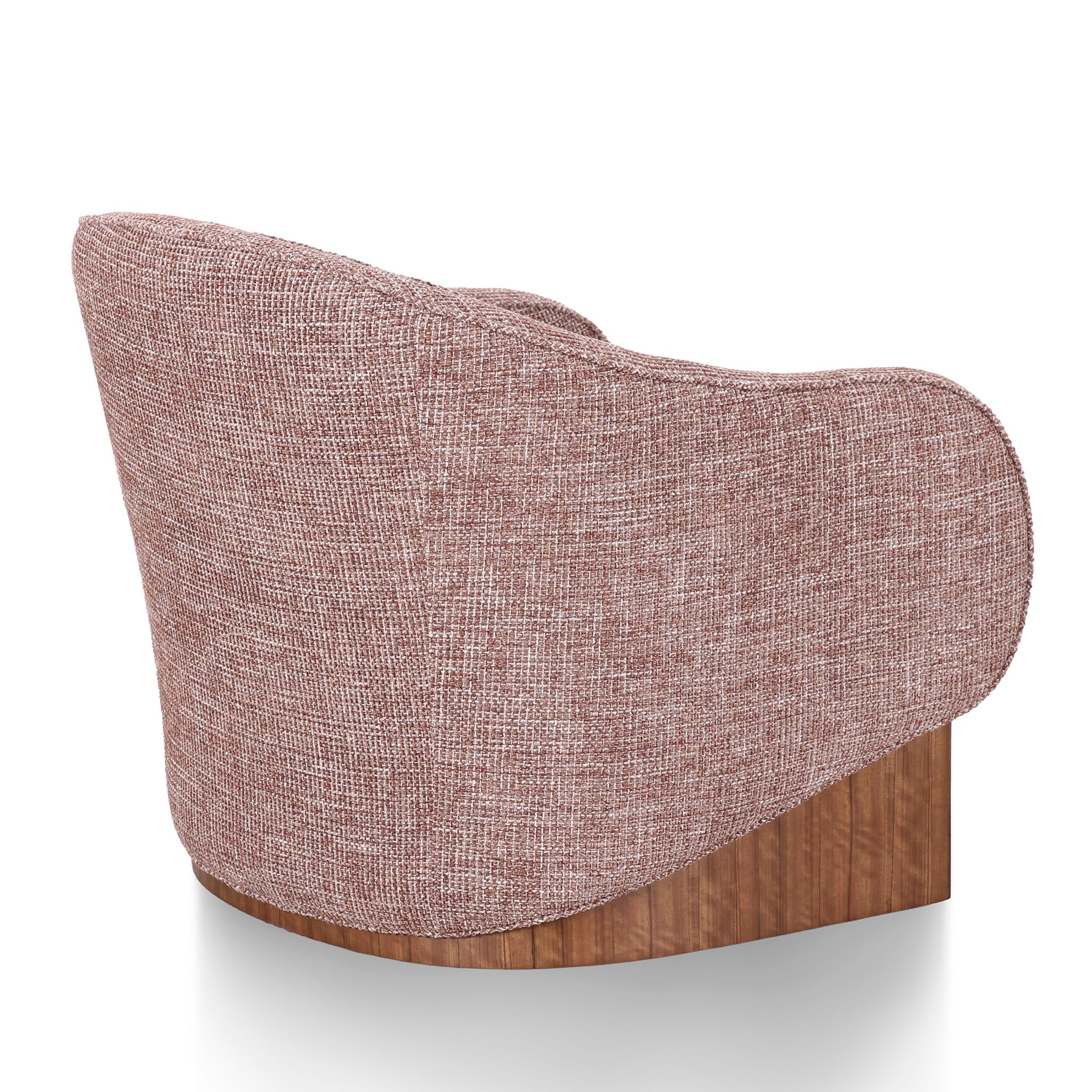 Balancing softness with structure, the Vanta Armchair in Santiago Copper pairs an inviting curved form with a solid base, creating a piece that feels stable, warm, and visually composed.