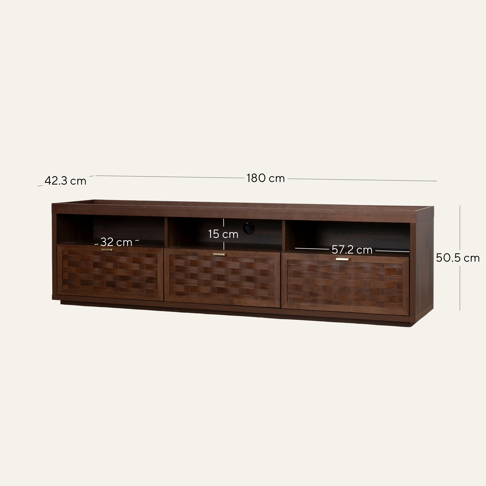 Overall: 180cm (W) x 42.3cm (D) x 50.5cm (H) Drawer Internal: 51.5cm (W) x 30.5cm (D) x 10cm (H) Shelf: 57.2cm (W) x 32cm (D) x 15cm (H)