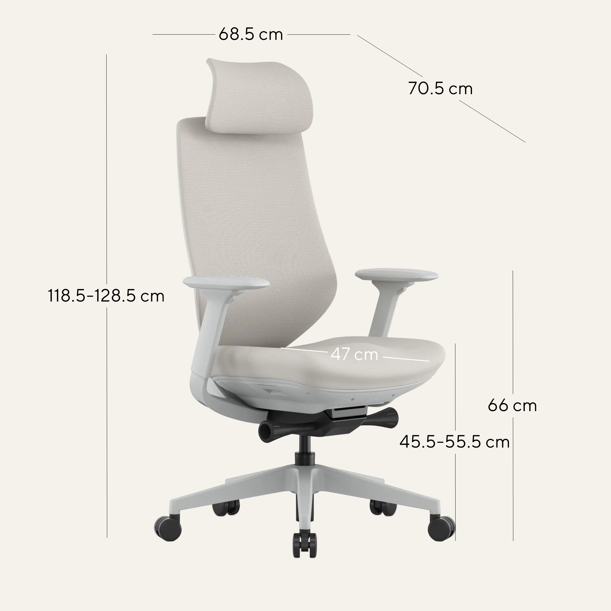 Bringing refreshing, understated elegance to any workspace, The Velsan Mesh Office Chair in Light Grey with Headrest brightens your setup and complements minimalist, Scandinavian, and contemporary interiors.