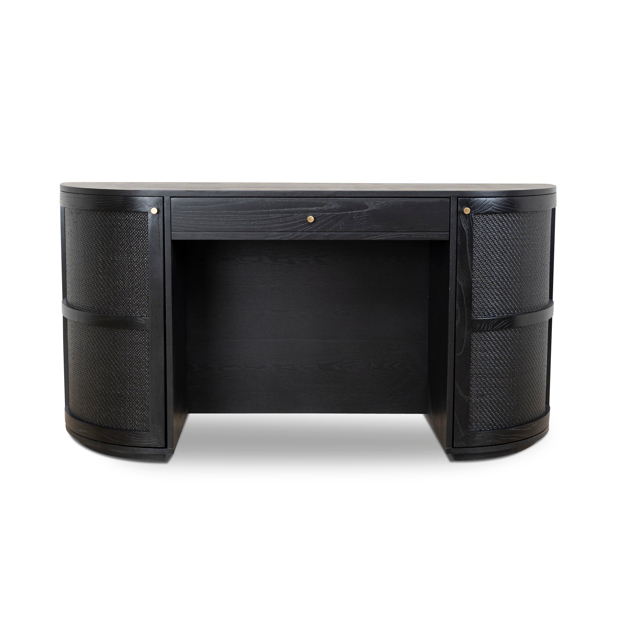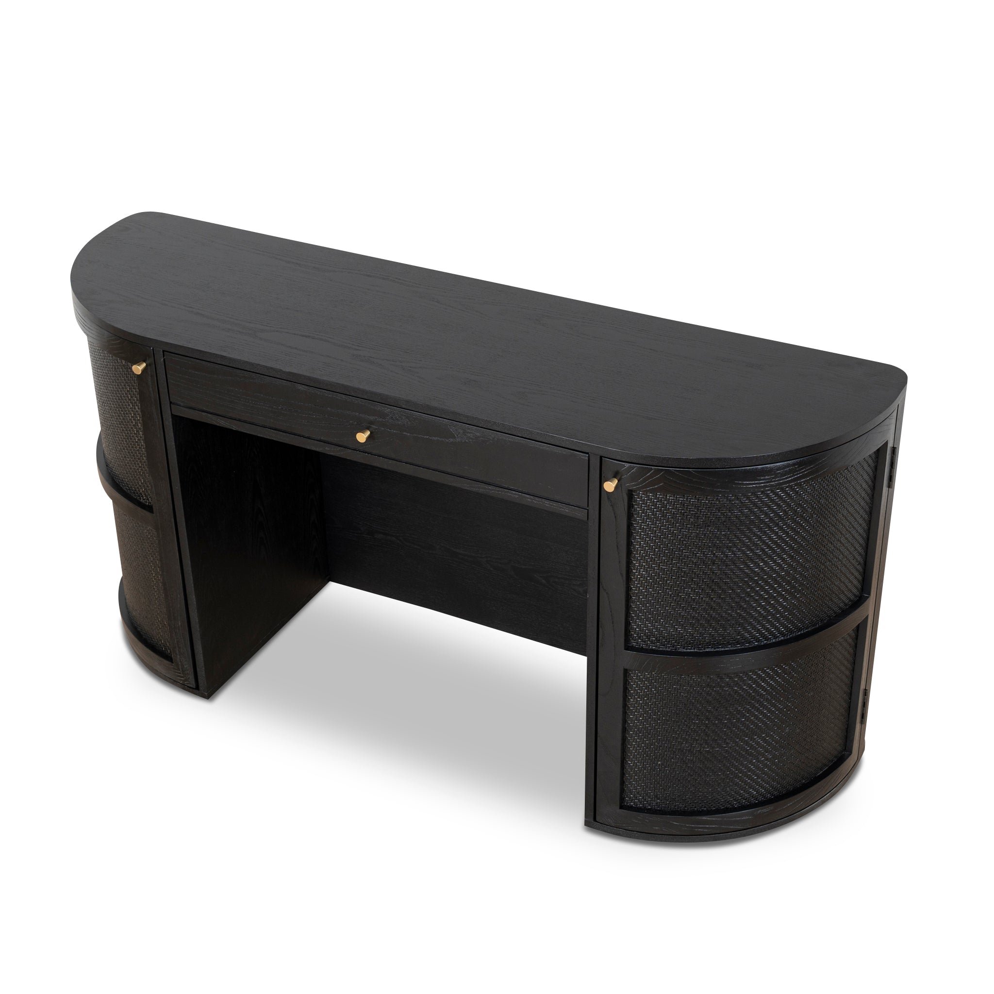Verso 1.55m Rattan Home Office Desk - Full Black