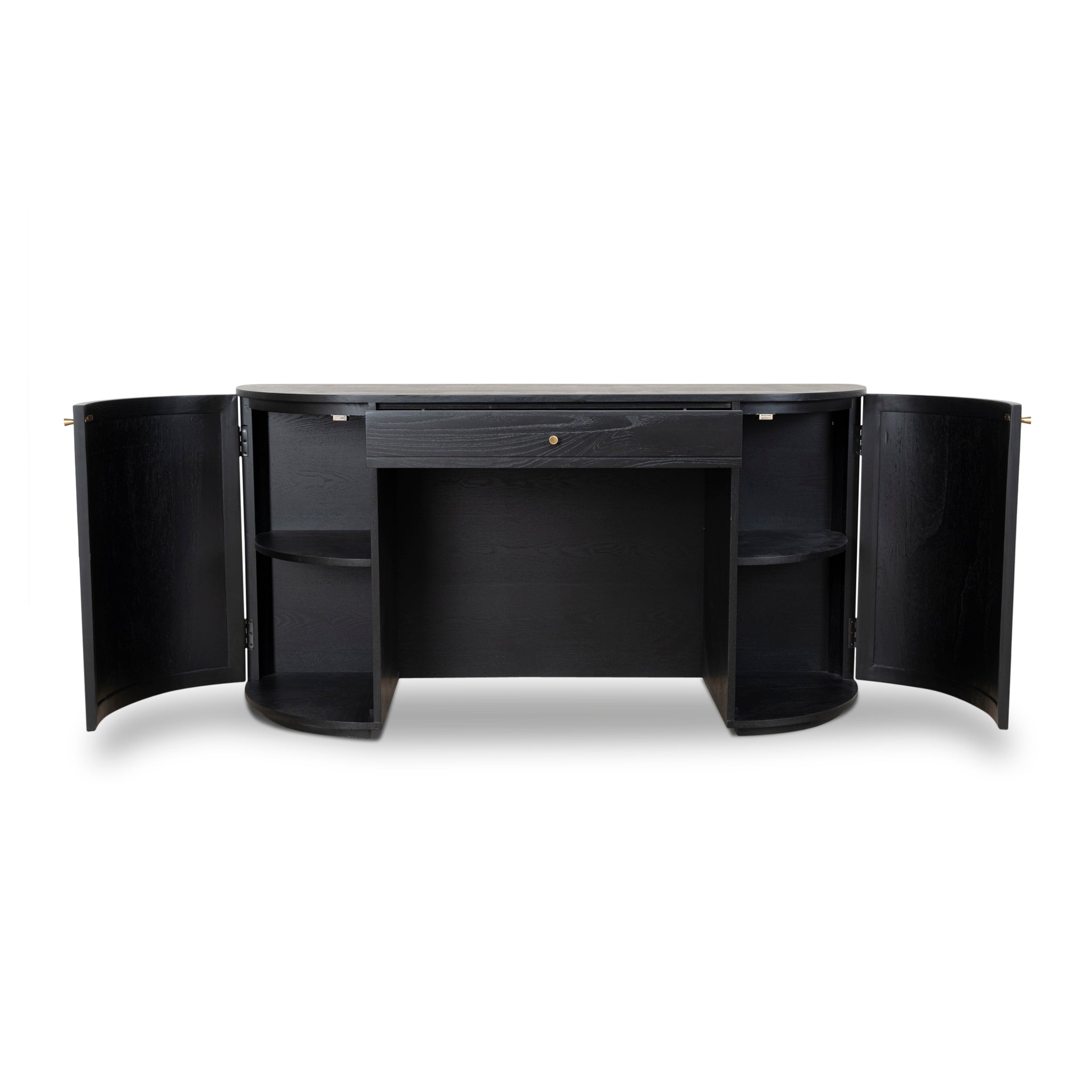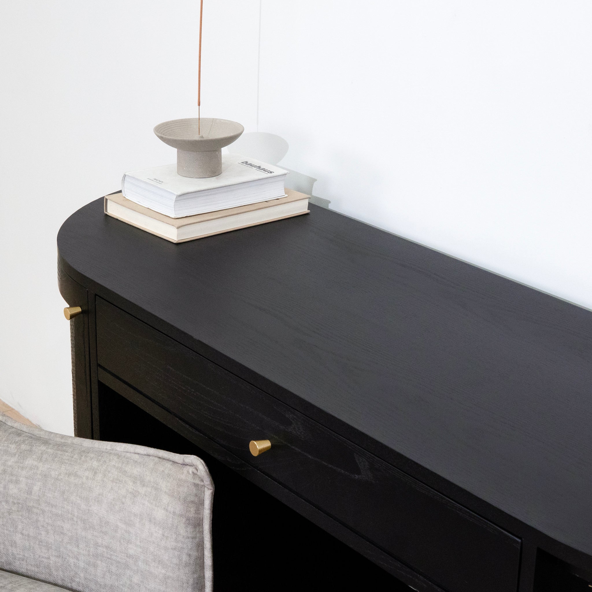 Discover elevated storage with the Verso 1.55m Rattan Home Office Desk in Full Black, a striking fusion of bold design and refined craftsmanship. Its sleek silhouette and elongated profile lend a sense of understated drama, making it a natural focal point in sophisticated interiors.