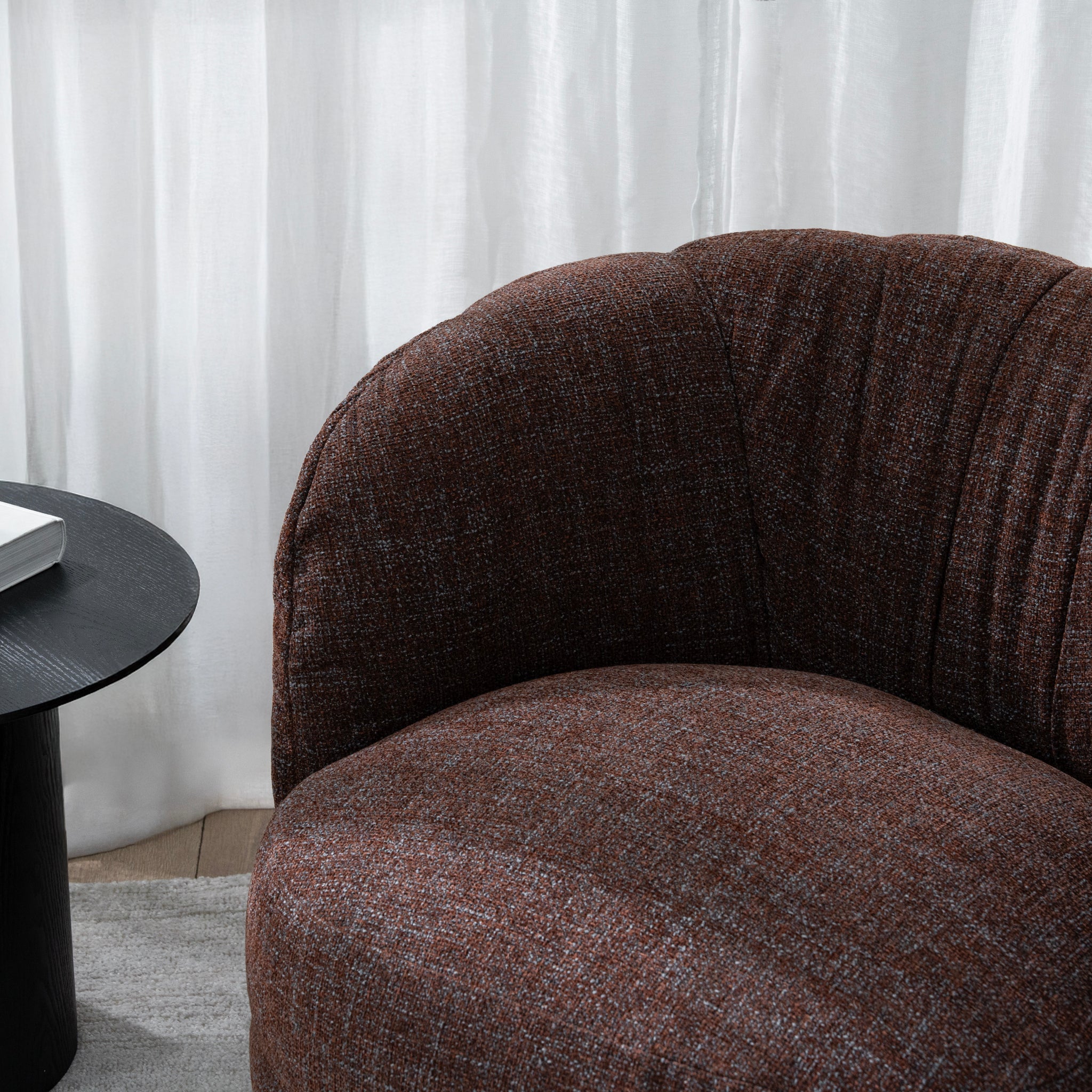 Wrapped in soft, textured upholstery, The Viridia Armchair in Moss Brown offers plush comfort with its padded seat and curved backrest. Its seamless, cocoon-like form provides all-around support, while the swivel base adds effortless functionality without compromising style.