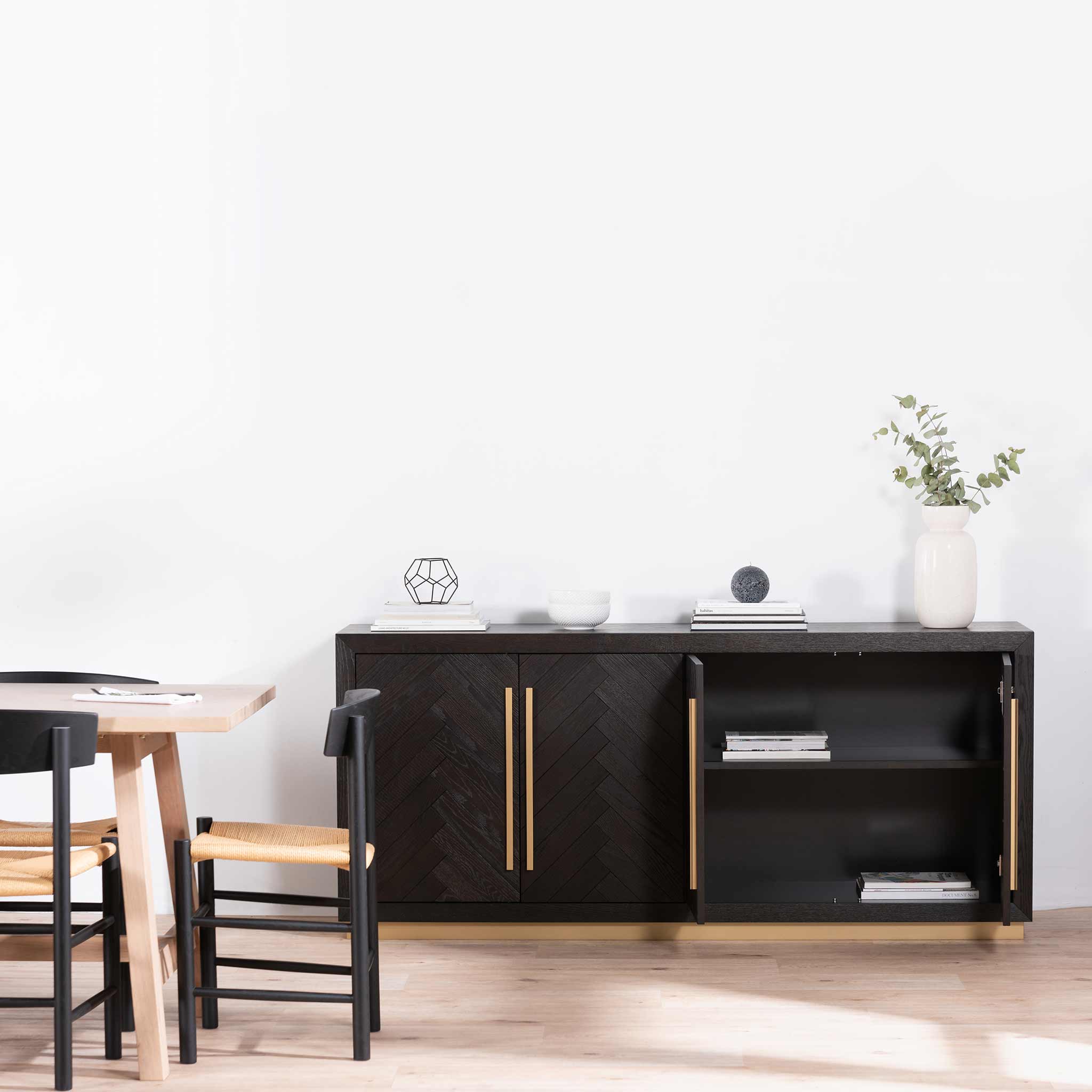 Enhance your home's storage and design with modern sideboards and buffets, offering smart solutions for empty spaces and contemporary luxury design featuring black peppercorn and unpolished brass accents.