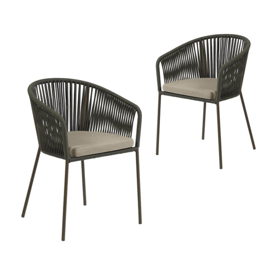 Set of 2 - Marzella Army Green Outdoor Dining Chair - Grey